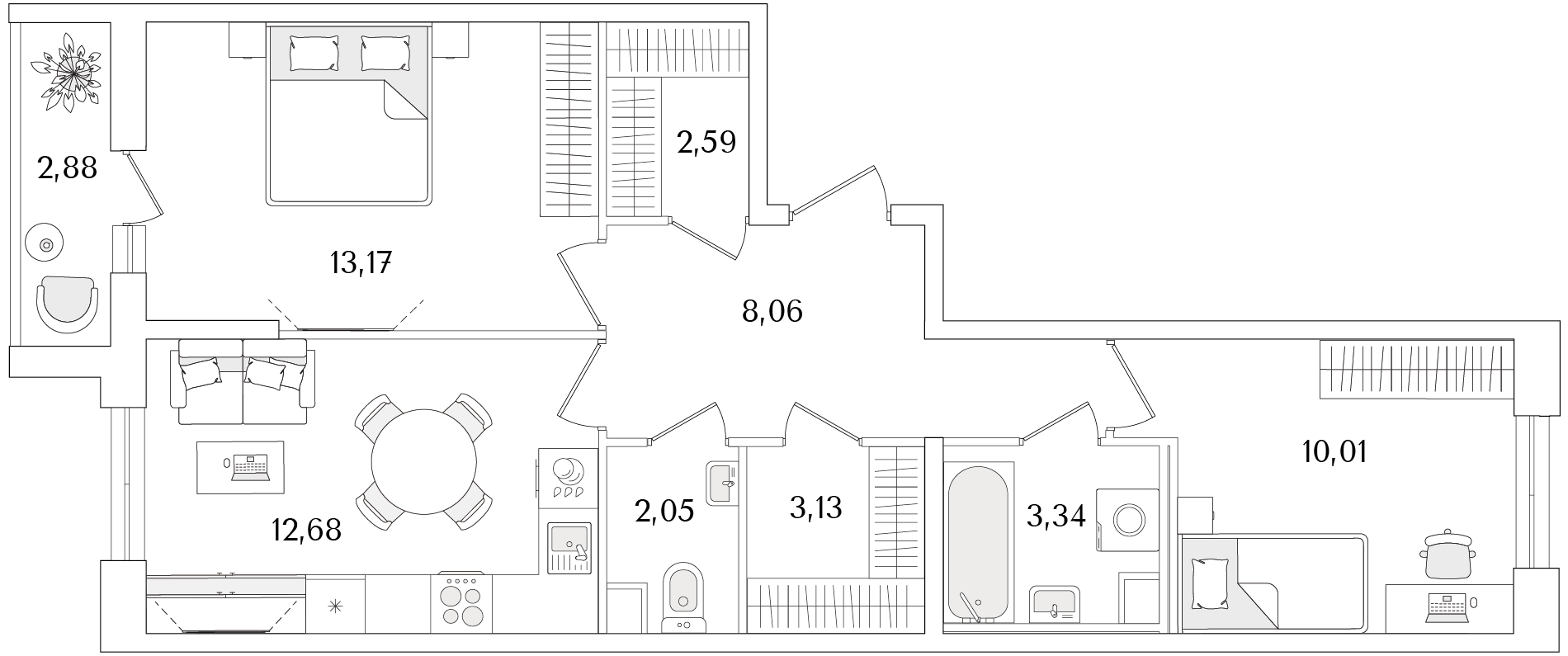 2-комнатная (58.84м2)