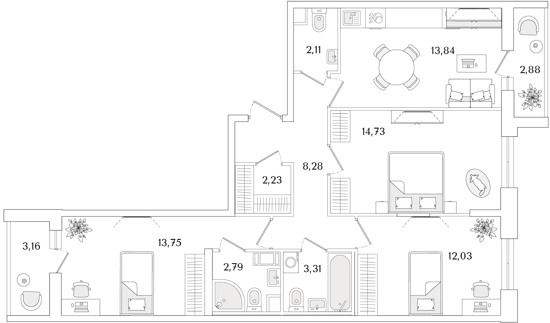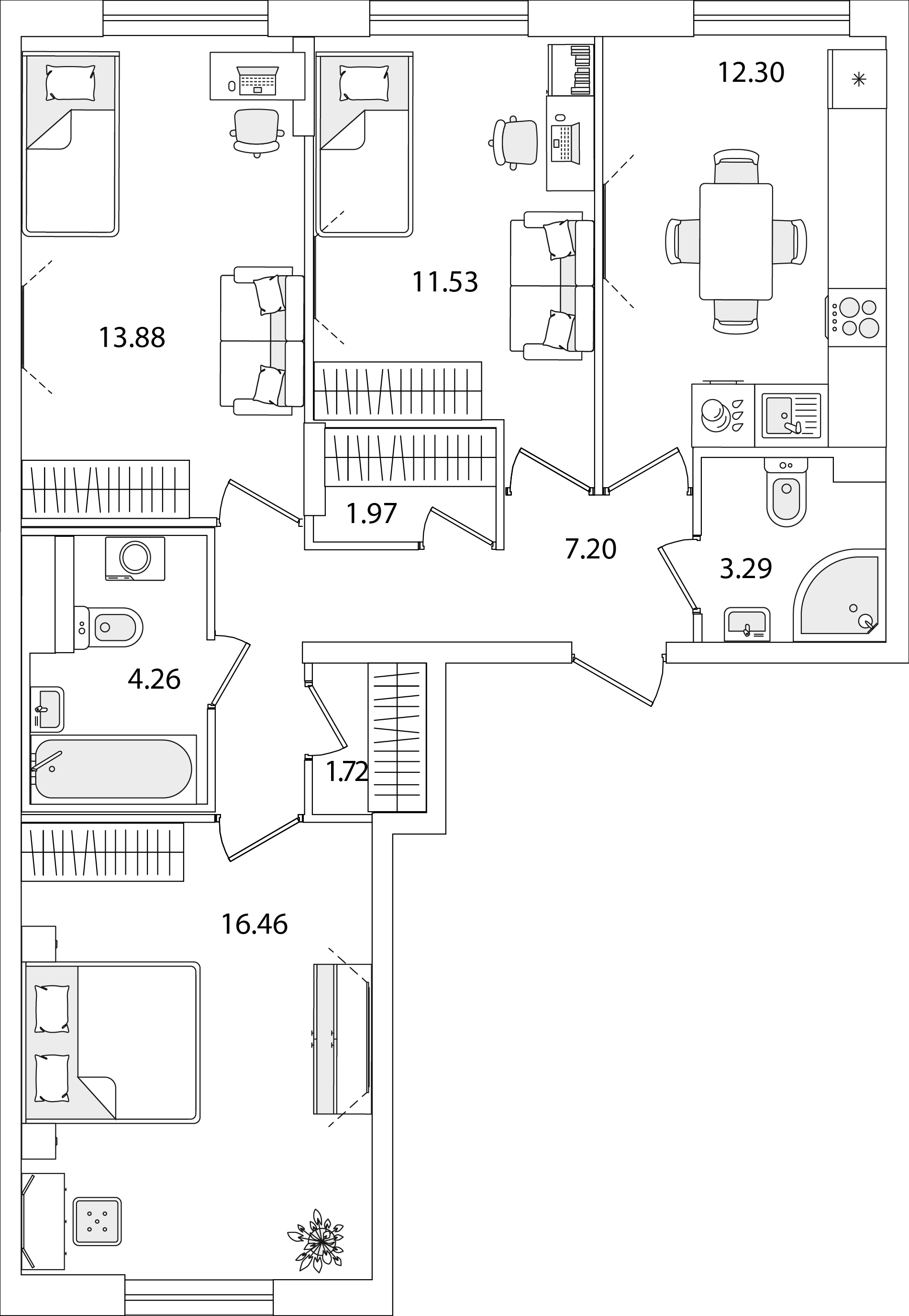 3-комнатная (77.5м2)