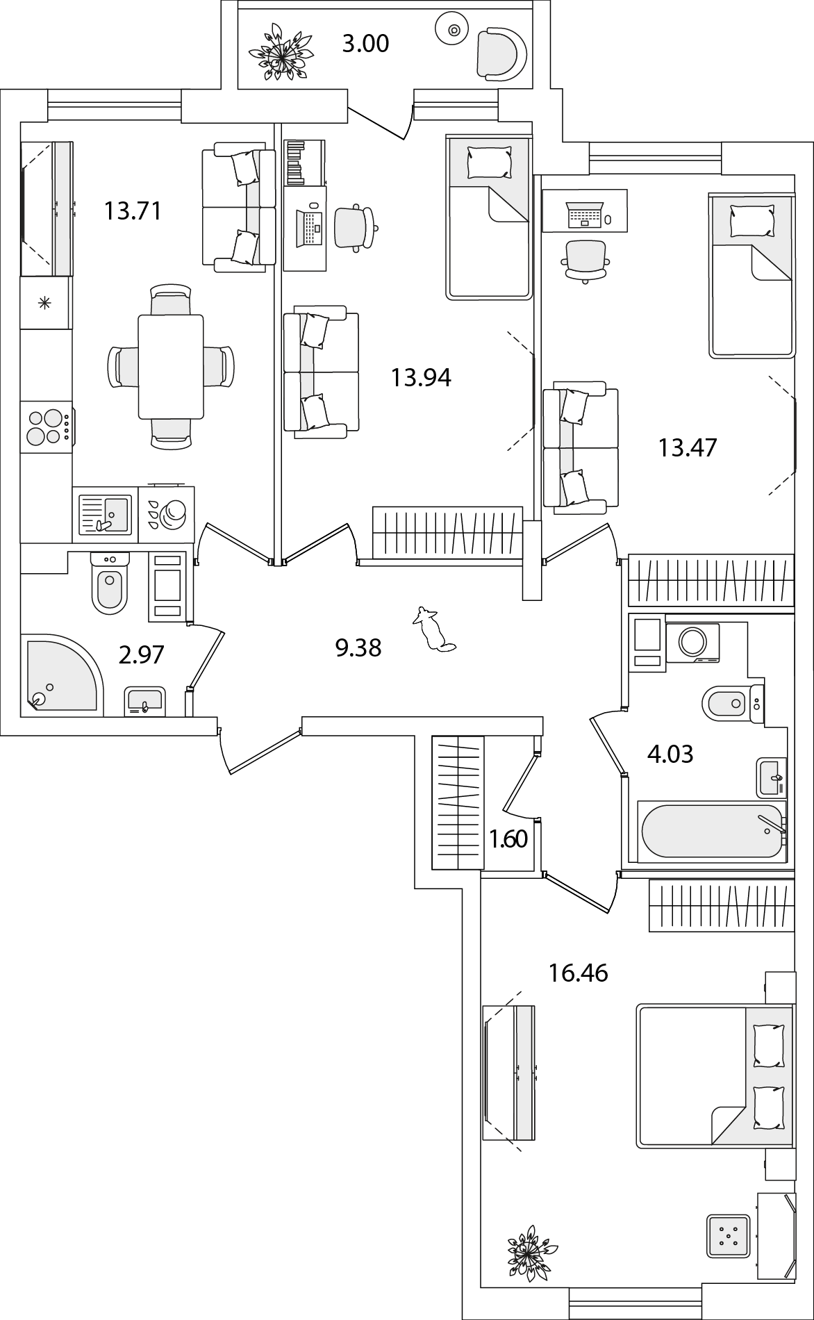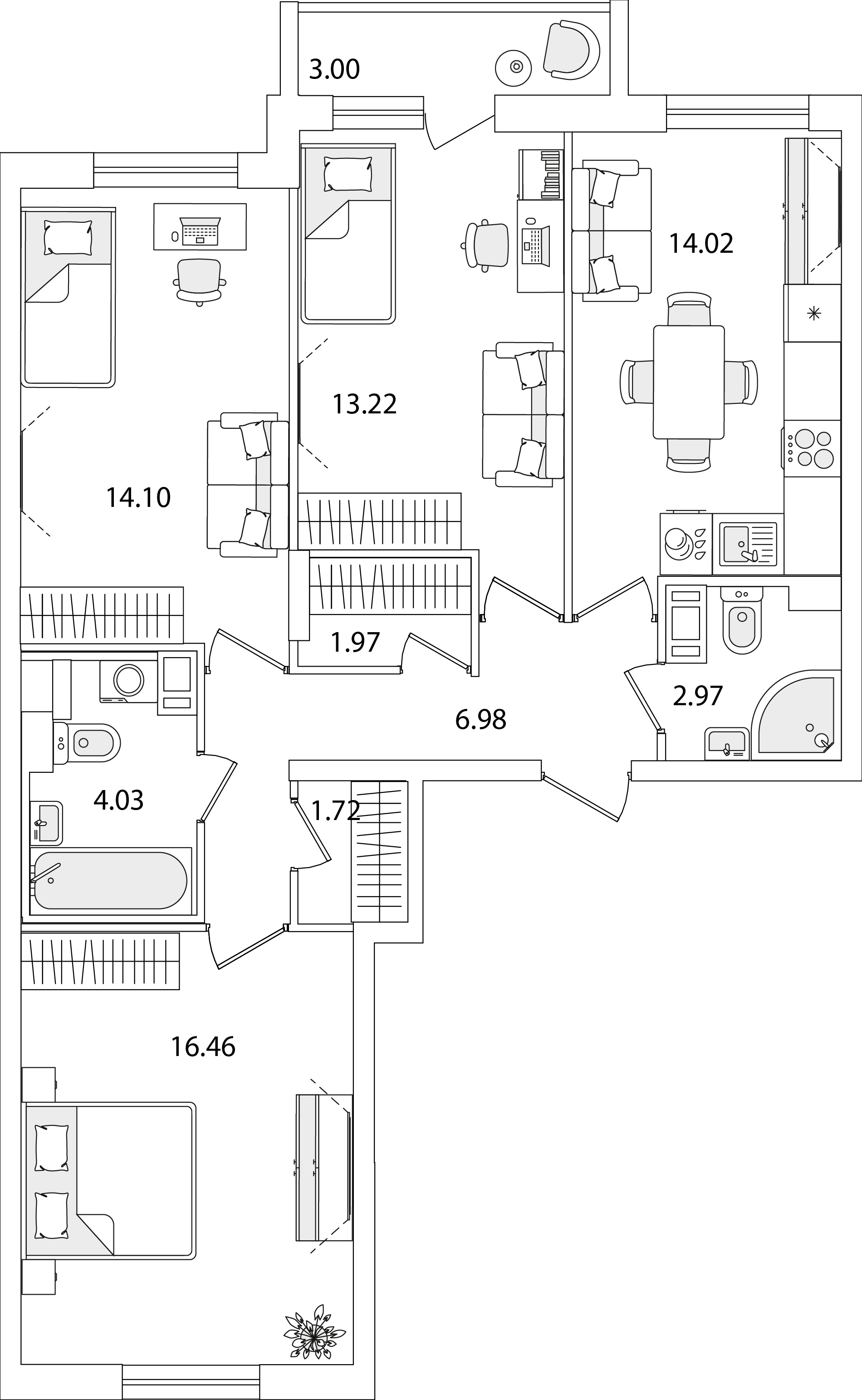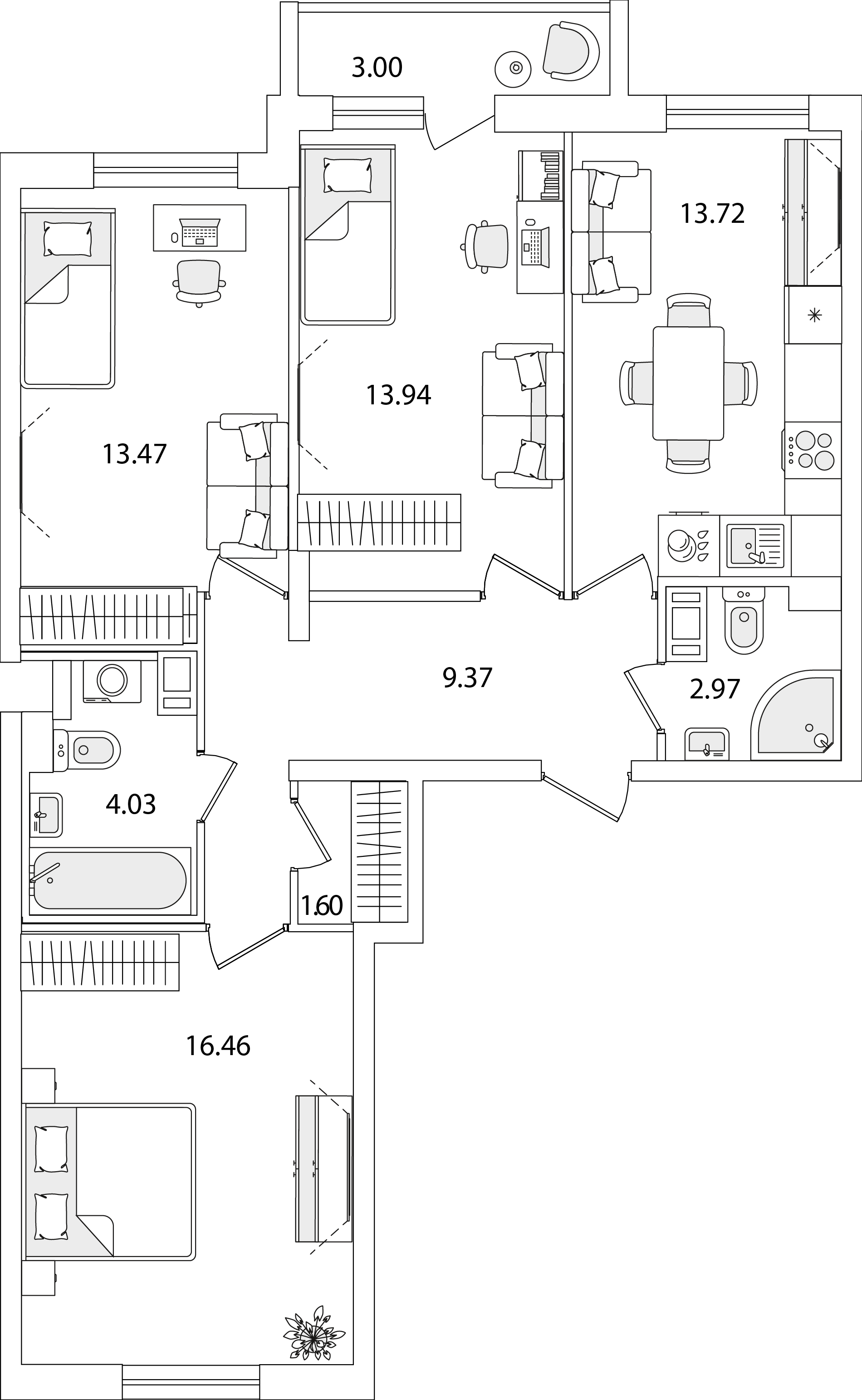 3-комнатная (76.97м2)