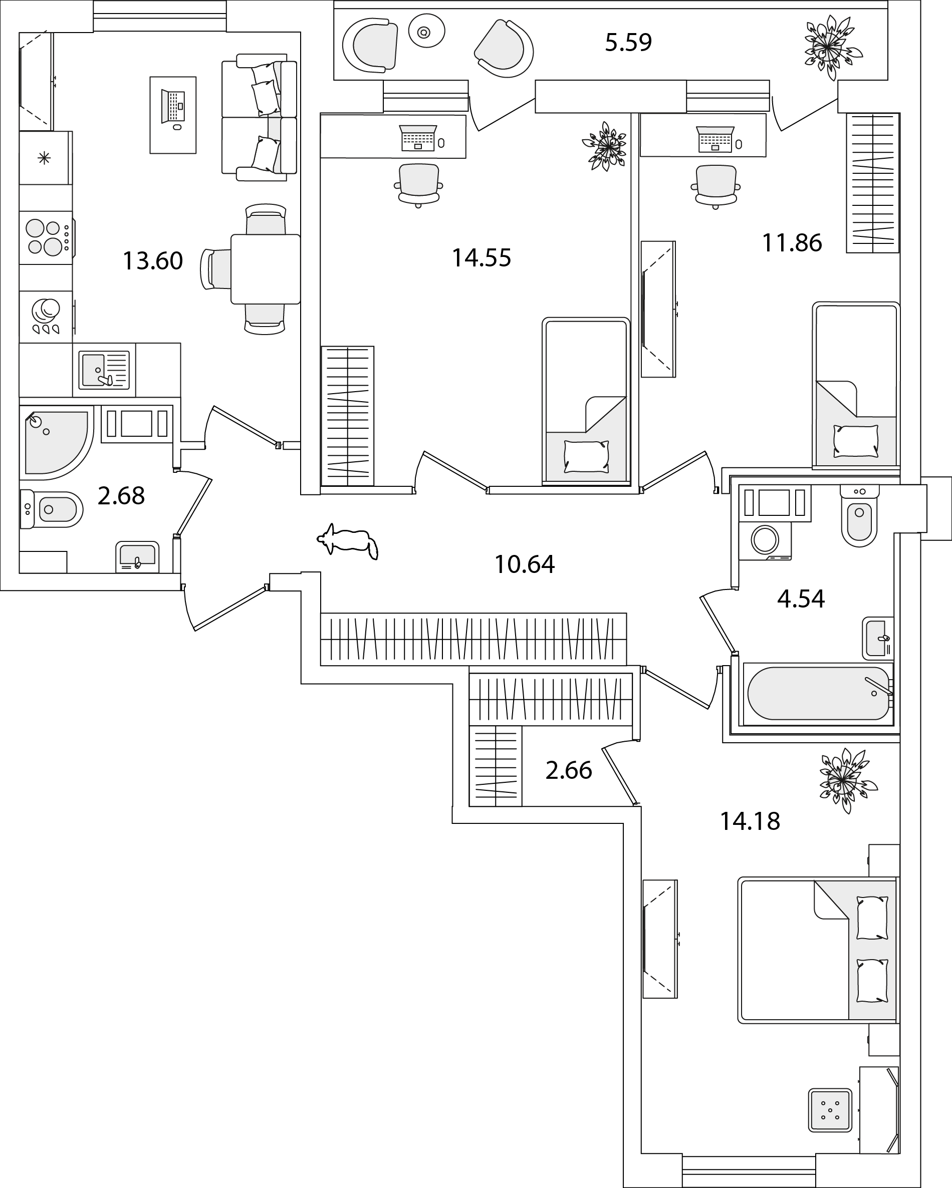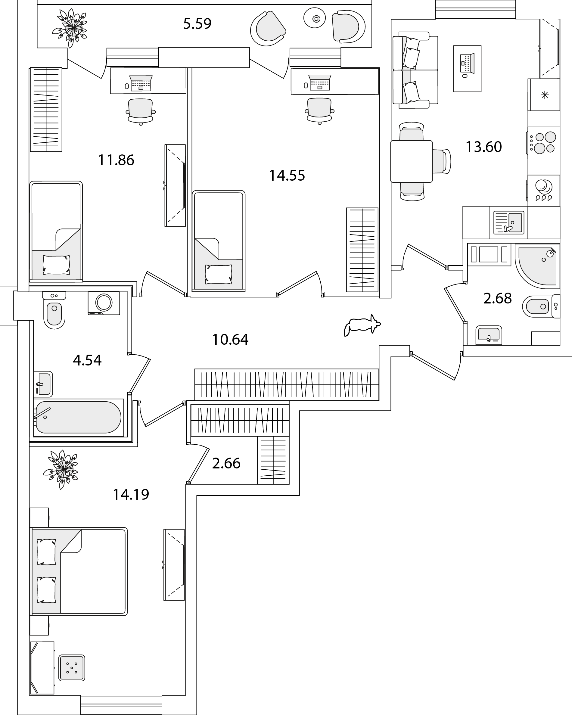 3-комнатная (77.26м2)