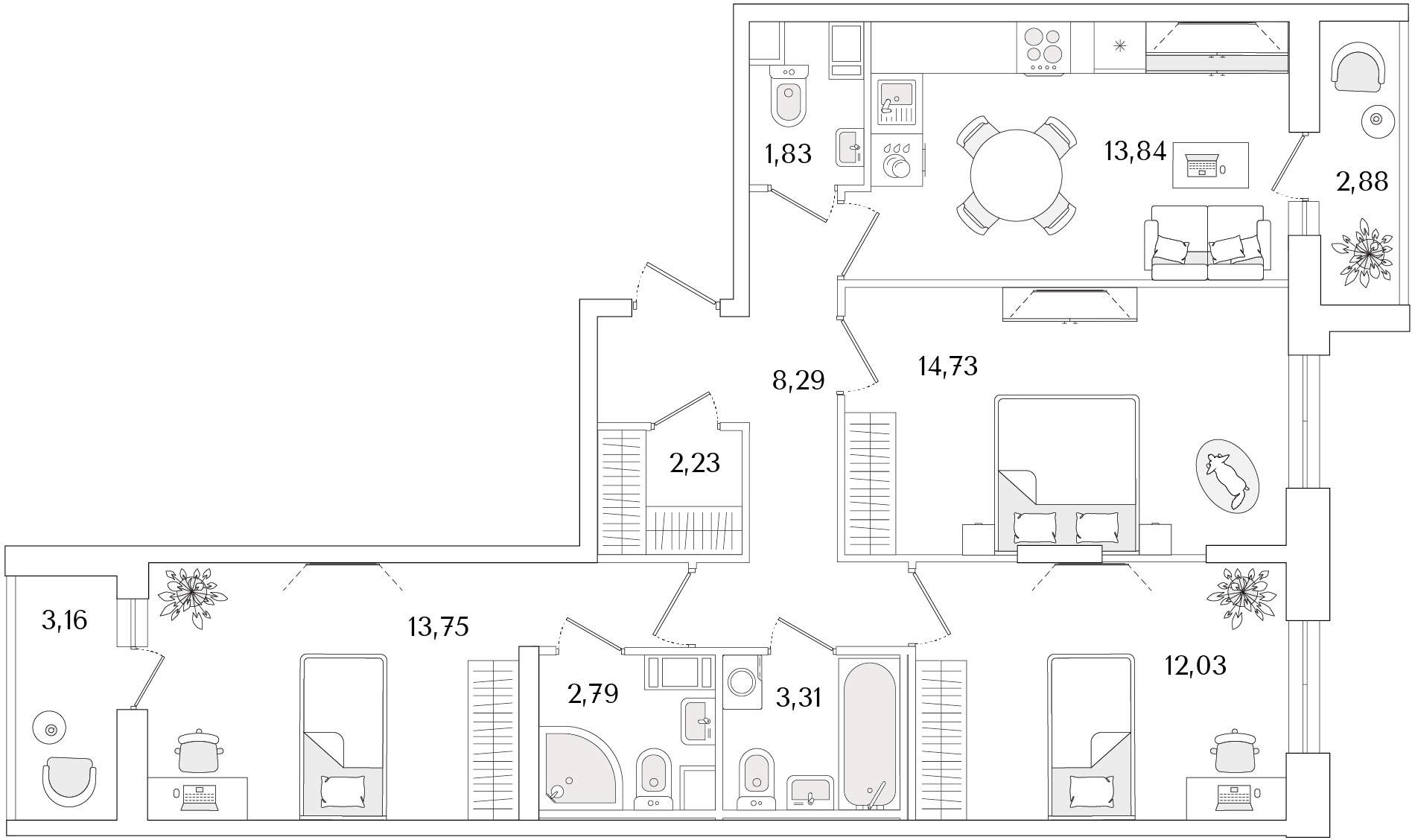 3-комнатная (75.82м2)