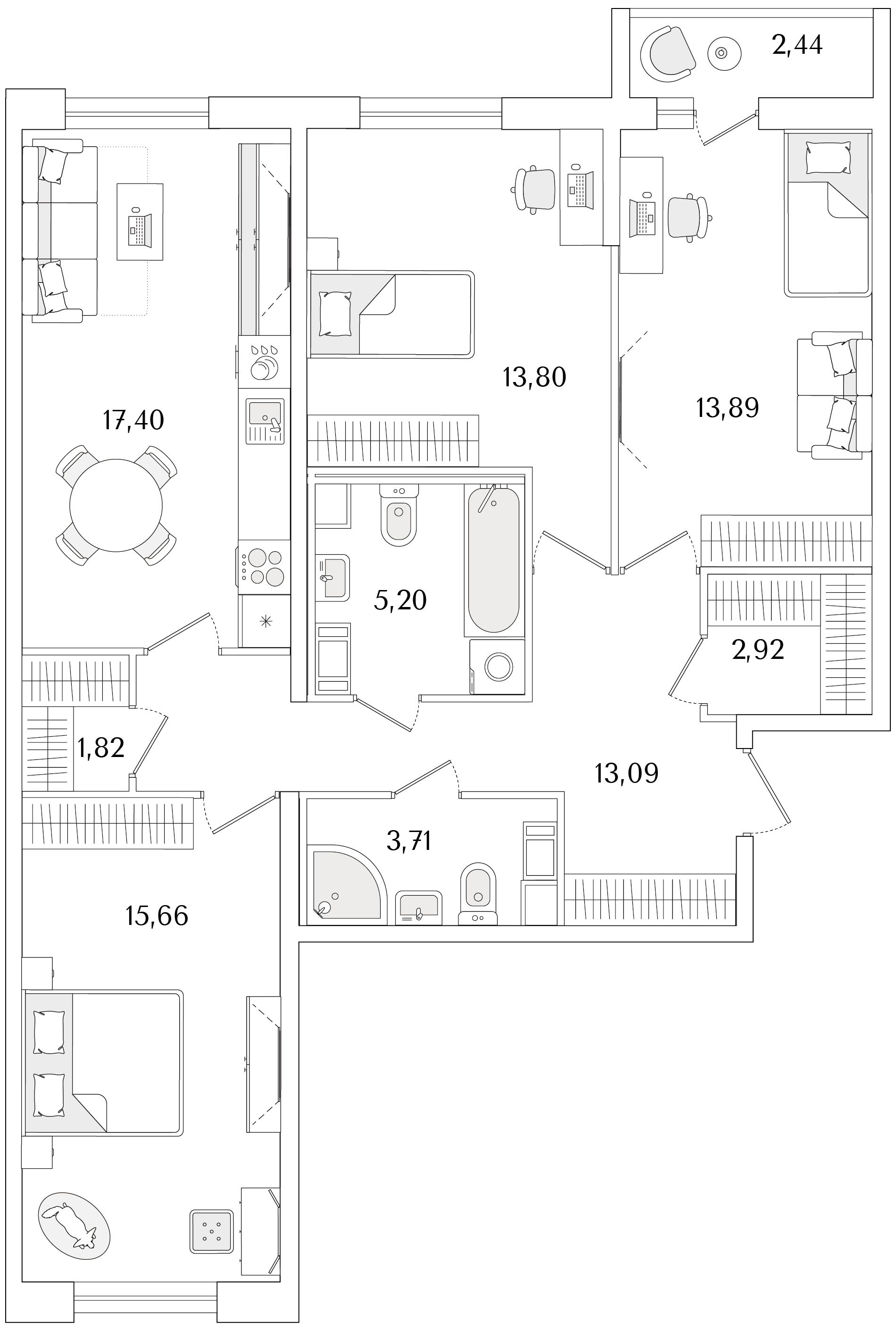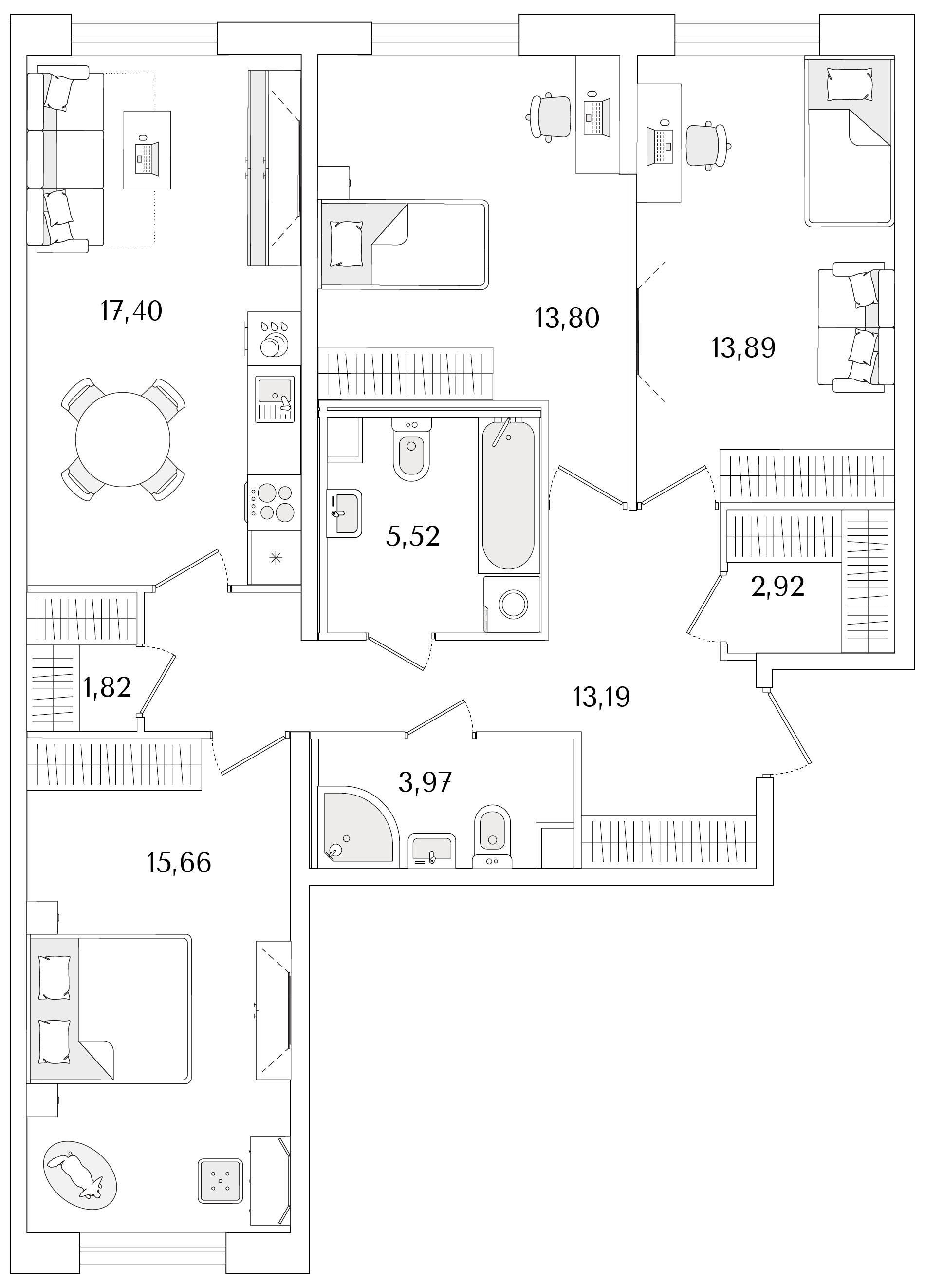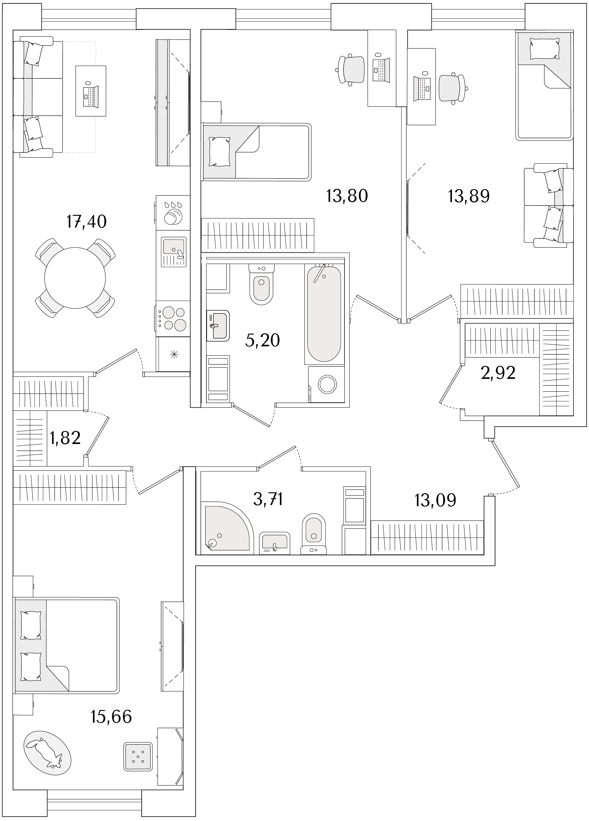 3-комнатная (77.79м2)