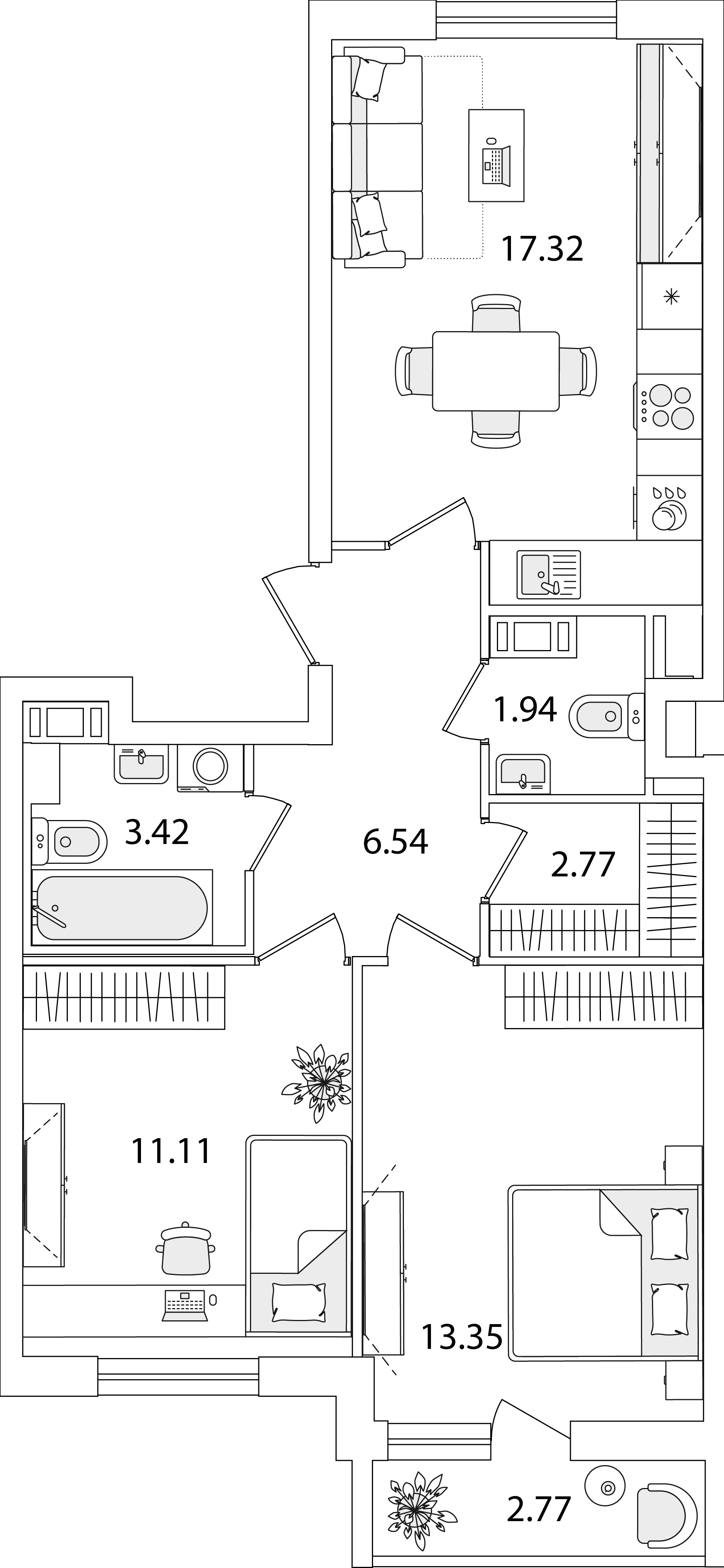 Евро 2-комнатная (63.04м2)