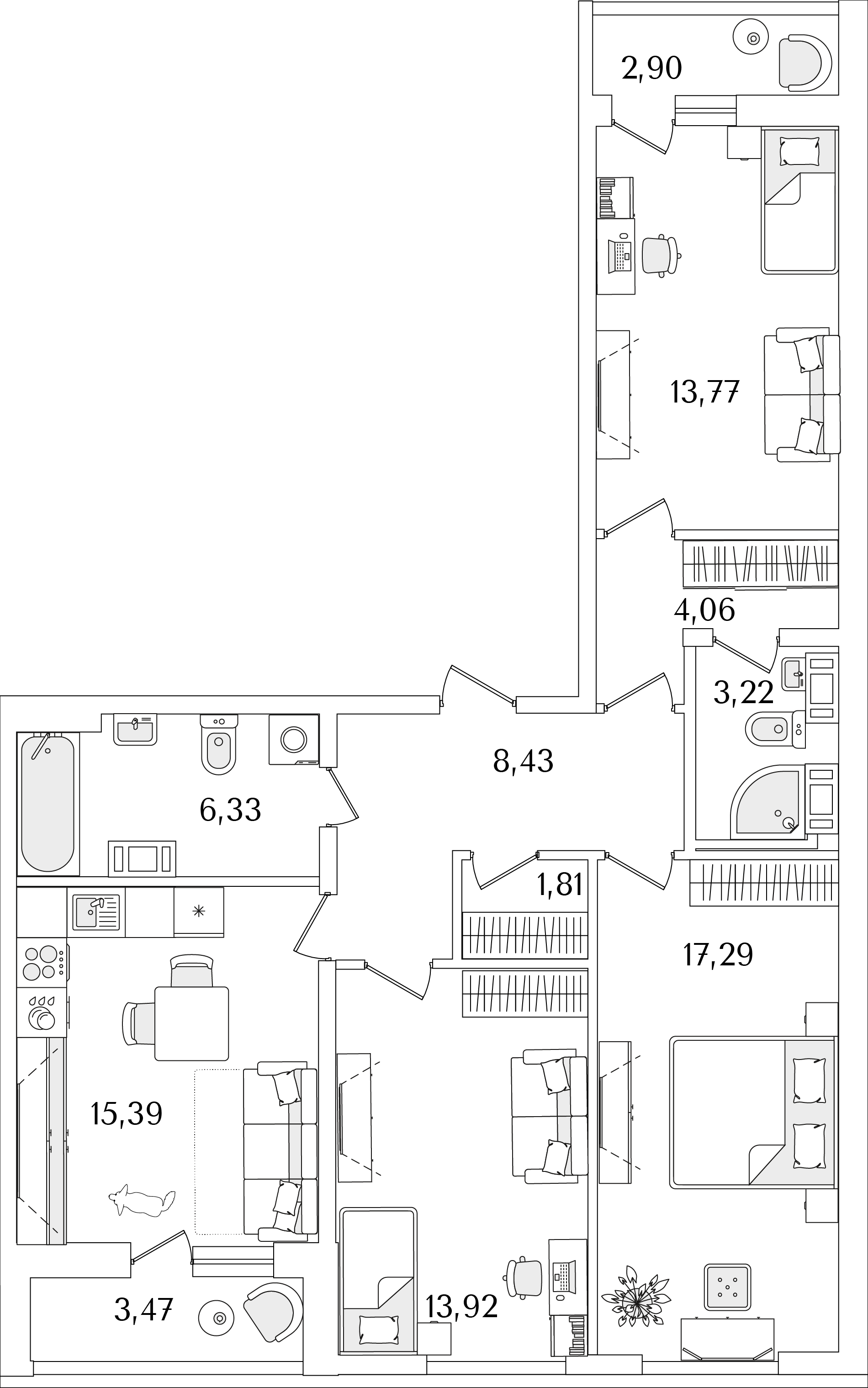 Трехкомнатные квартиры в ЖК Лайнеръ