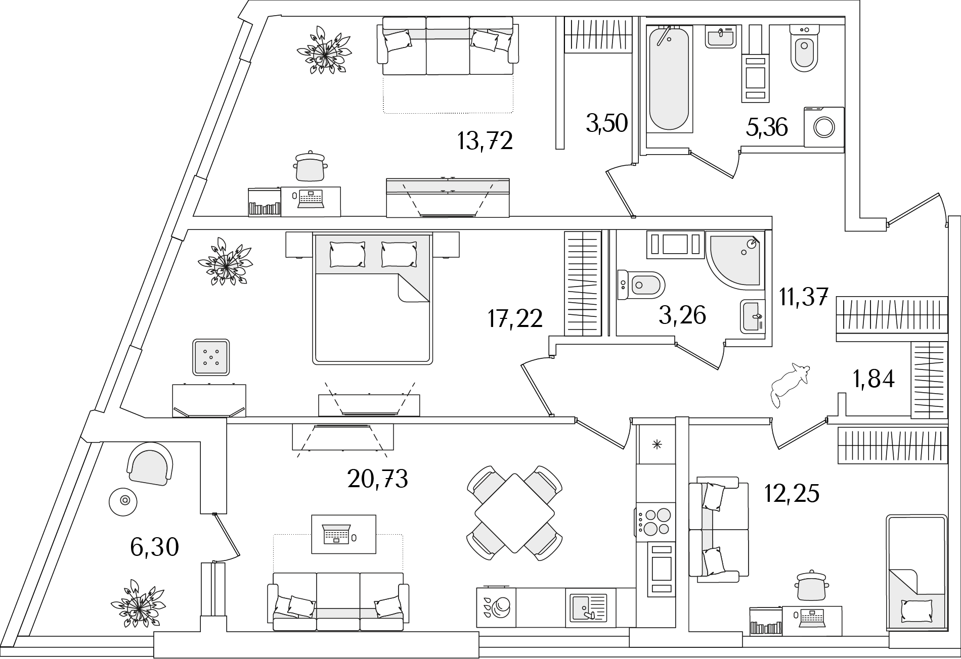 Евро трехкомнатные квартиры в ЖК Лайнеръ
