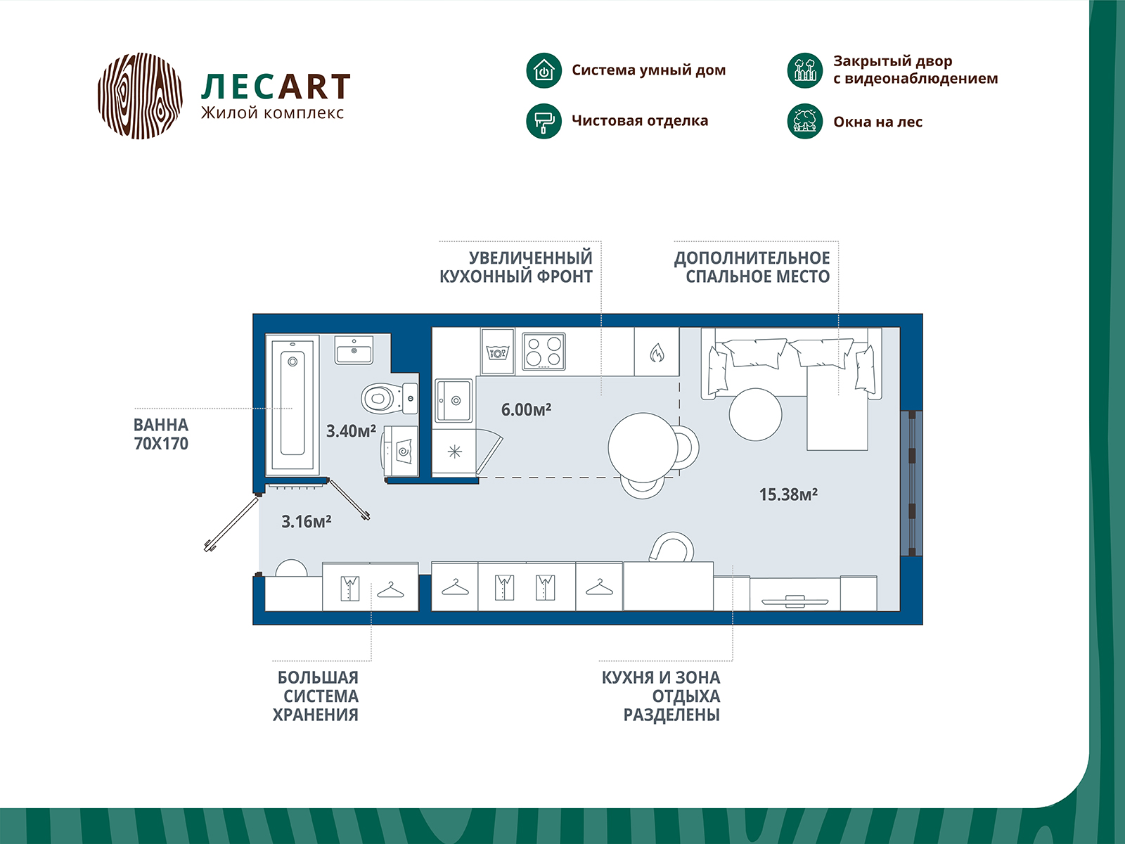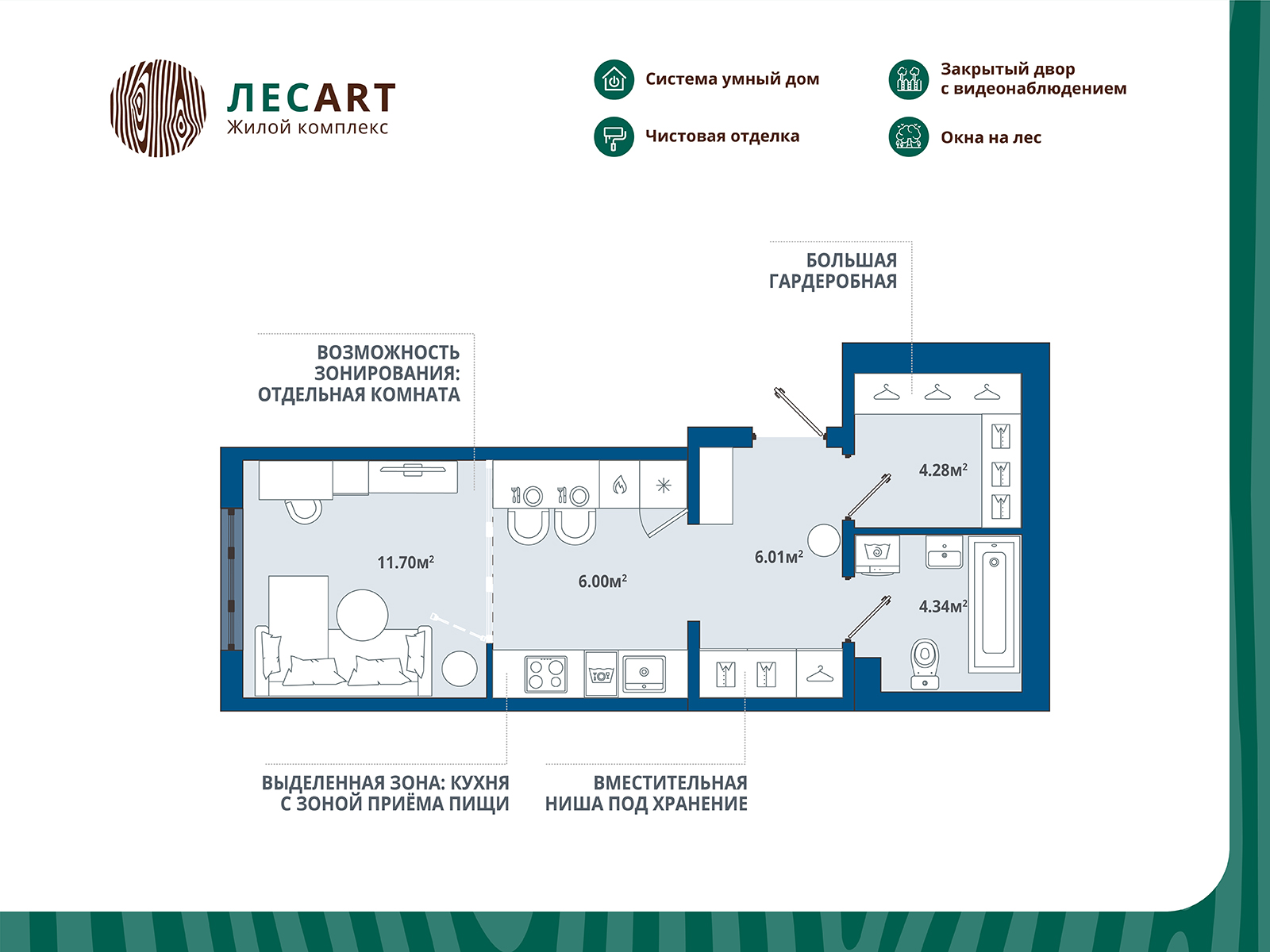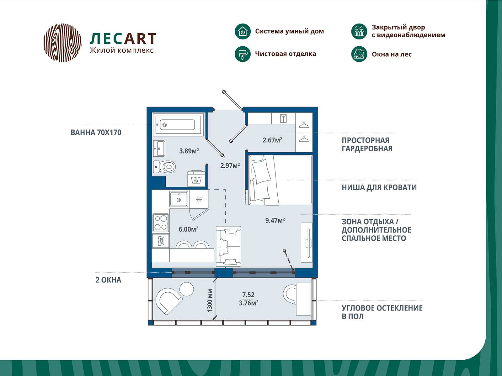 Однокомнатные квартиры в ЖК «ЛесART (ЛесАРТ)»