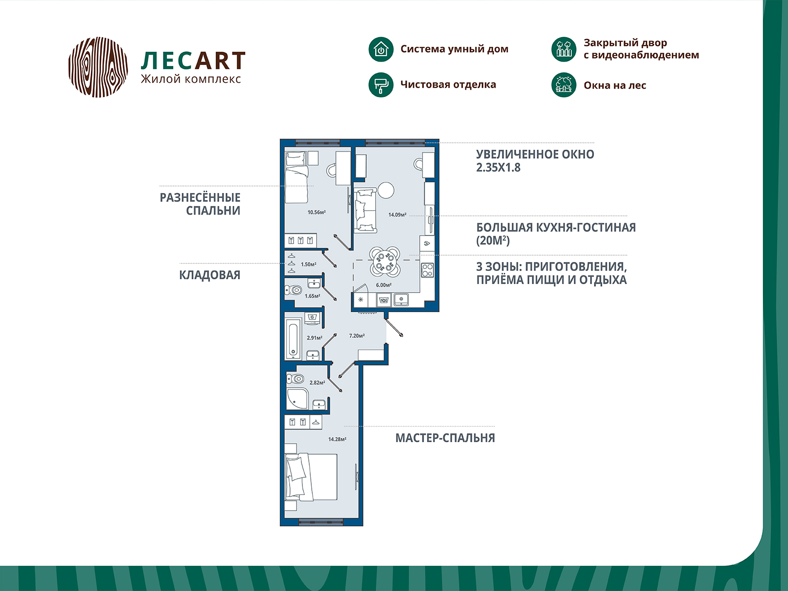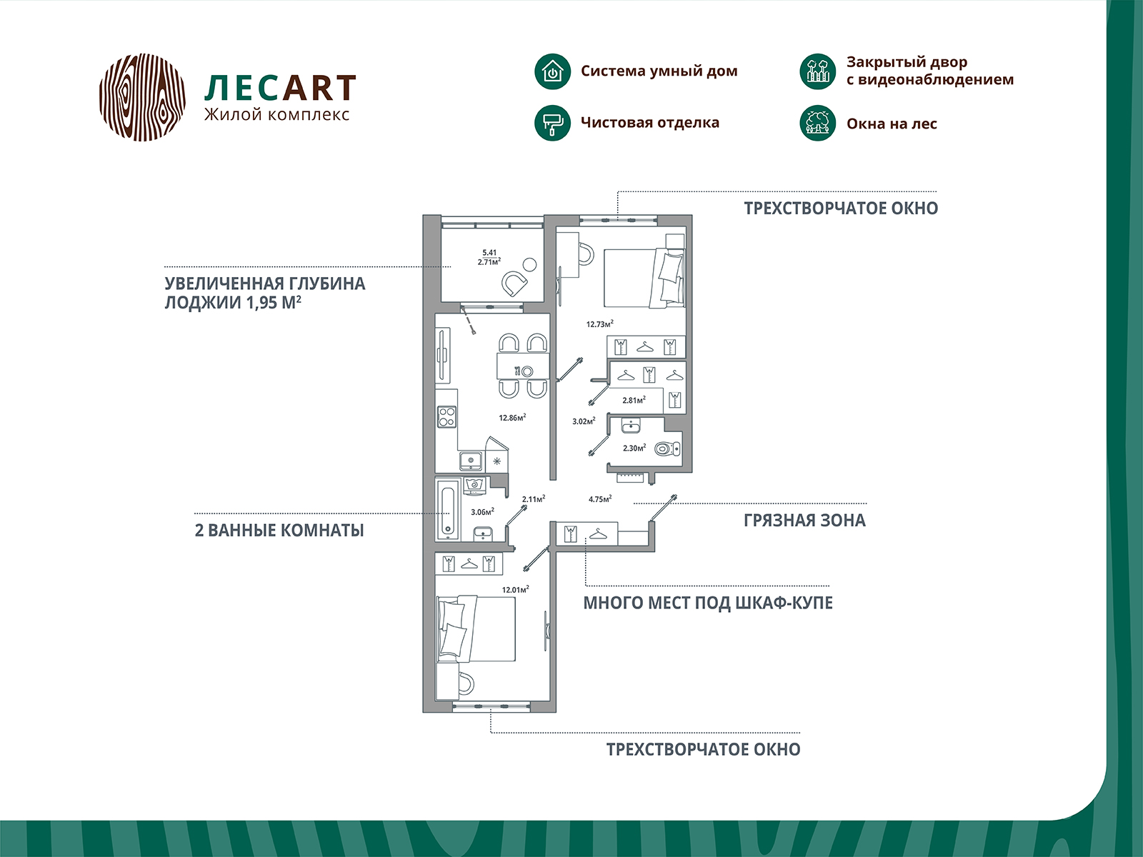 Двухкомнатные квартиры в ЖК «ЛесART (ЛесАРТ)»