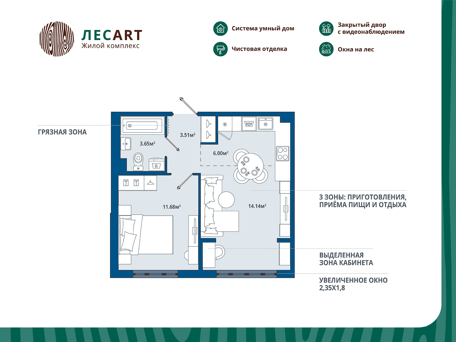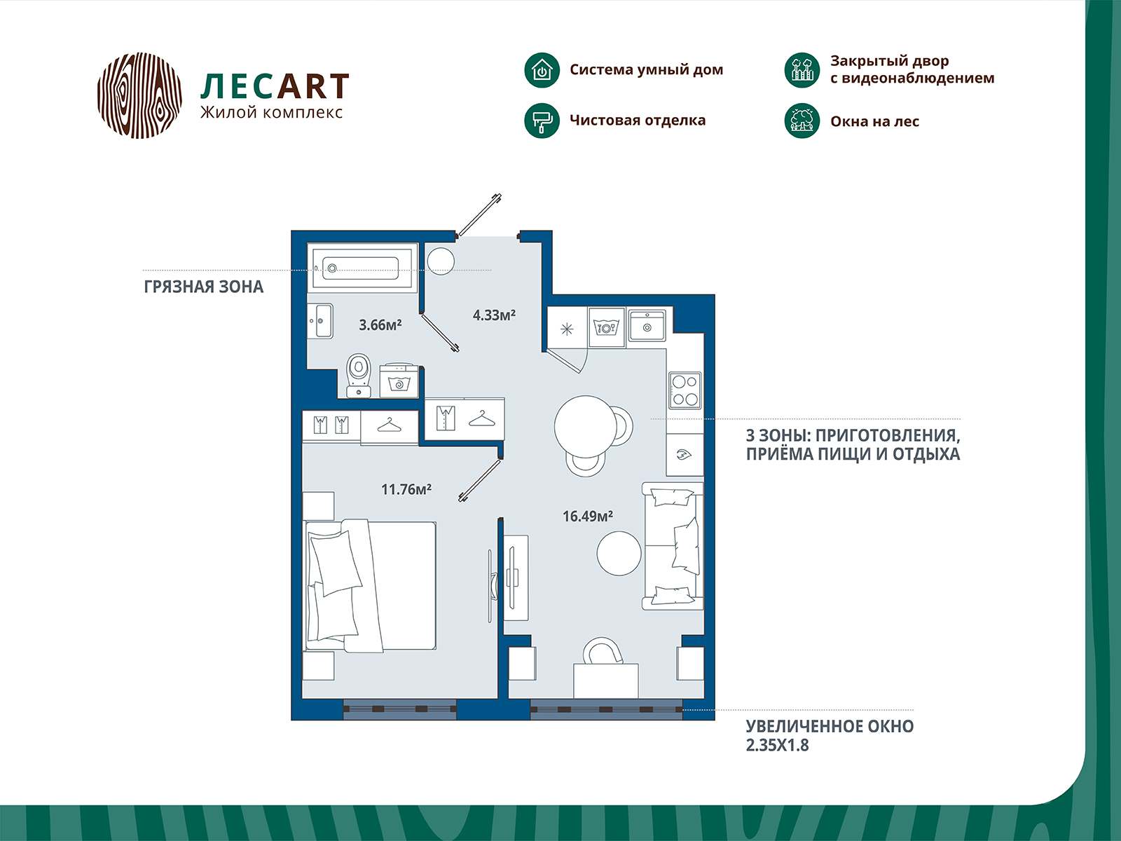 Евро однокомнатные квартиры в ЖК «ЛесART (ЛесАРТ)»