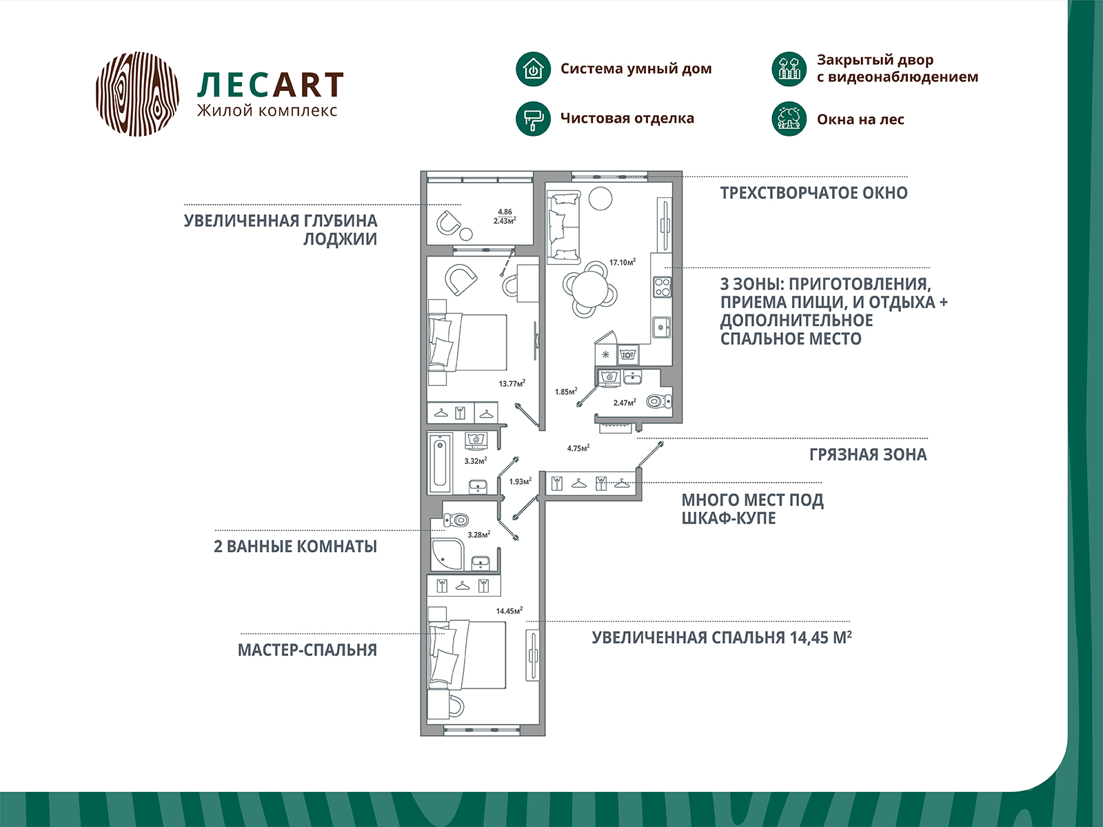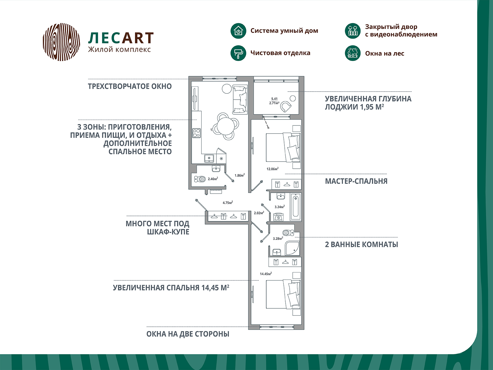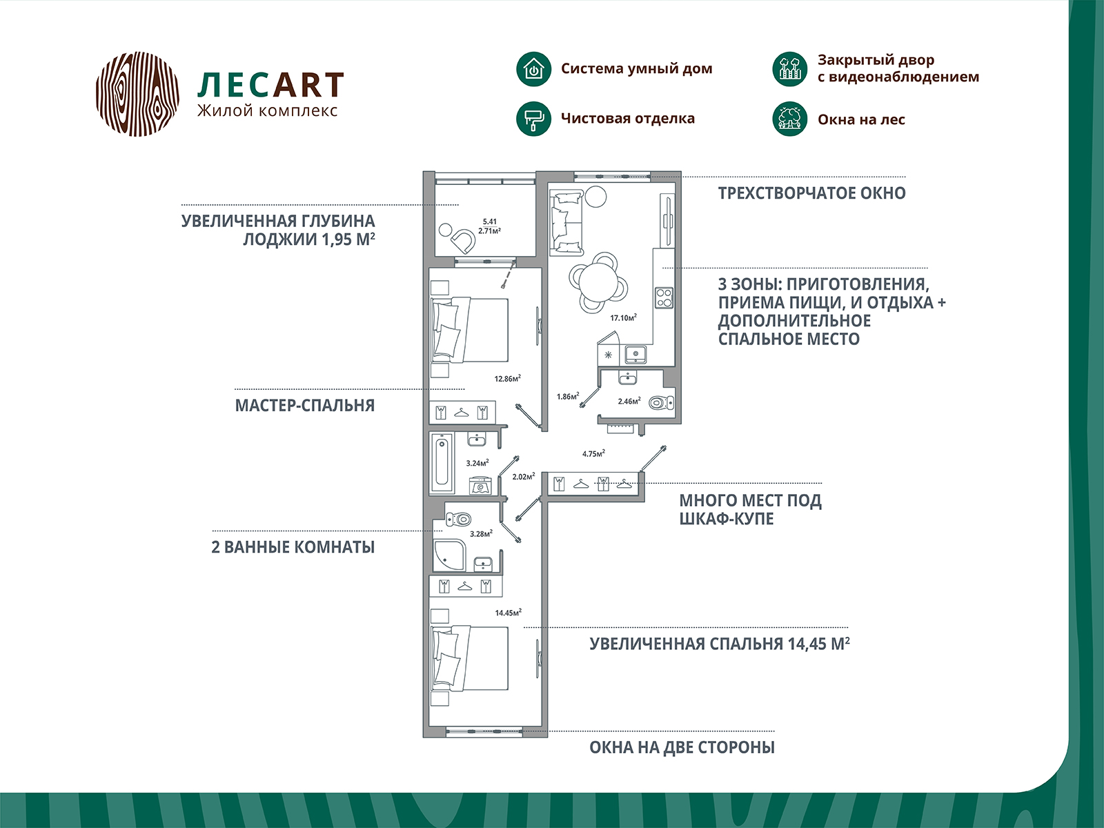 Евро двухкомнатные квартиры в ЖК «ЛесART (ЛесАРТ)»