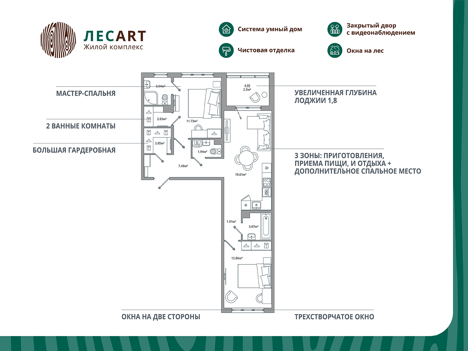 Евро двухкомнатные квартиры в ЖК «ЛесART (ЛесАРТ)» - страница 2