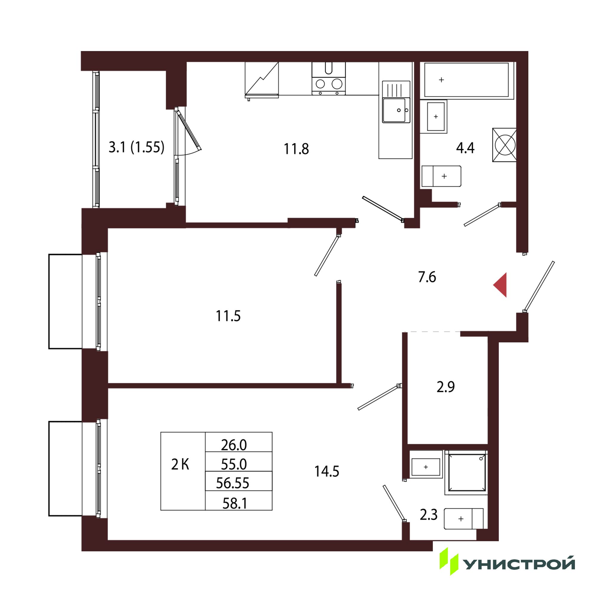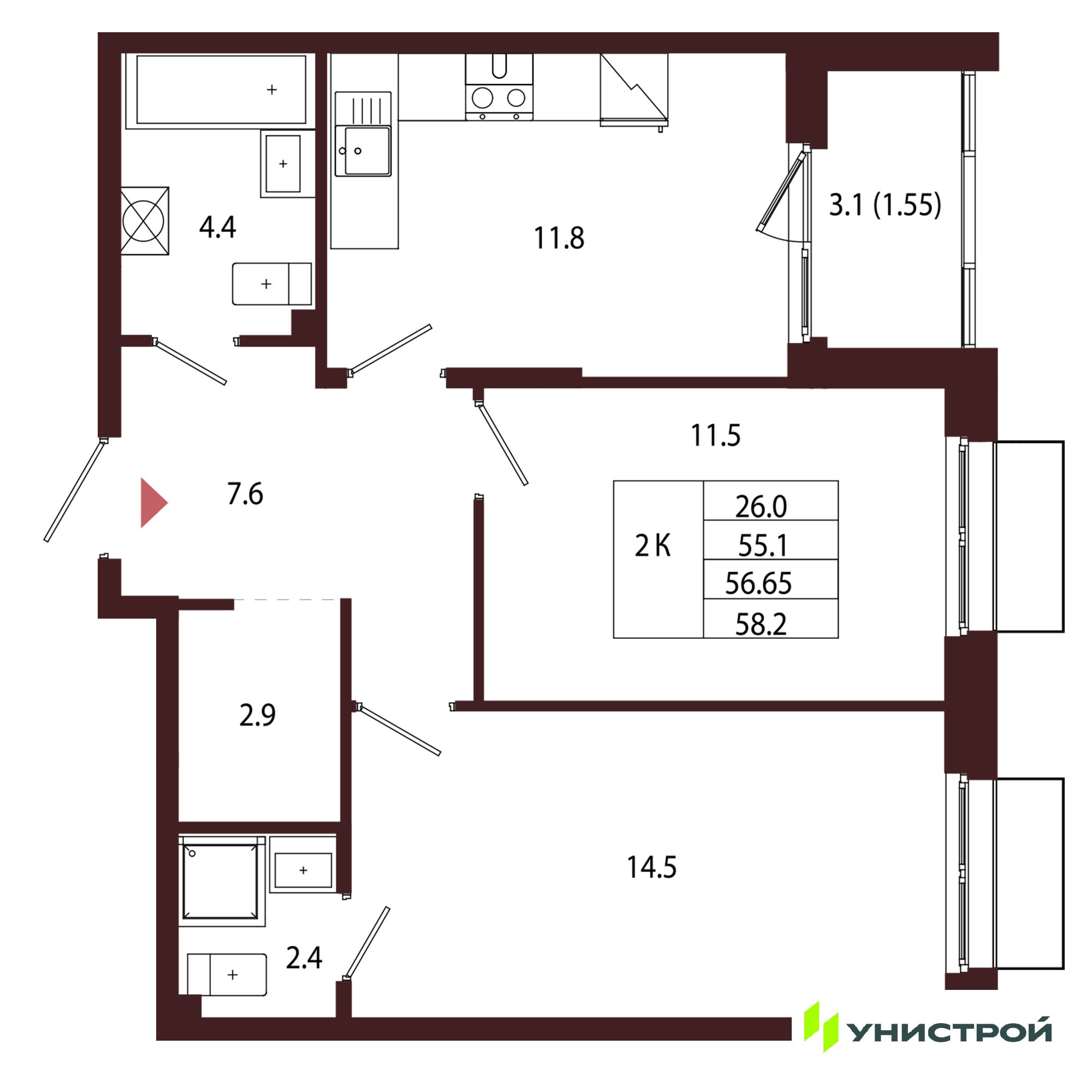 Двухкомнатные квартиры в ЖК Лисино