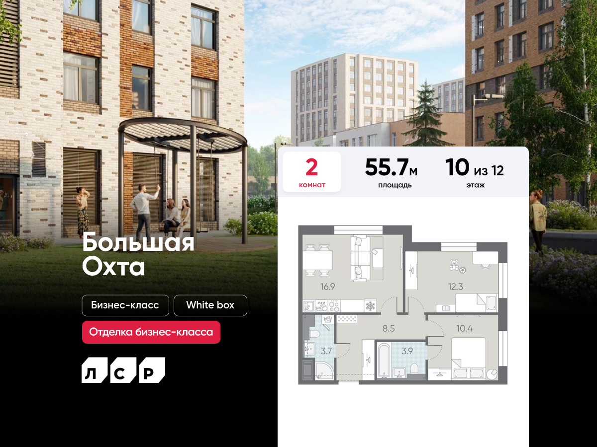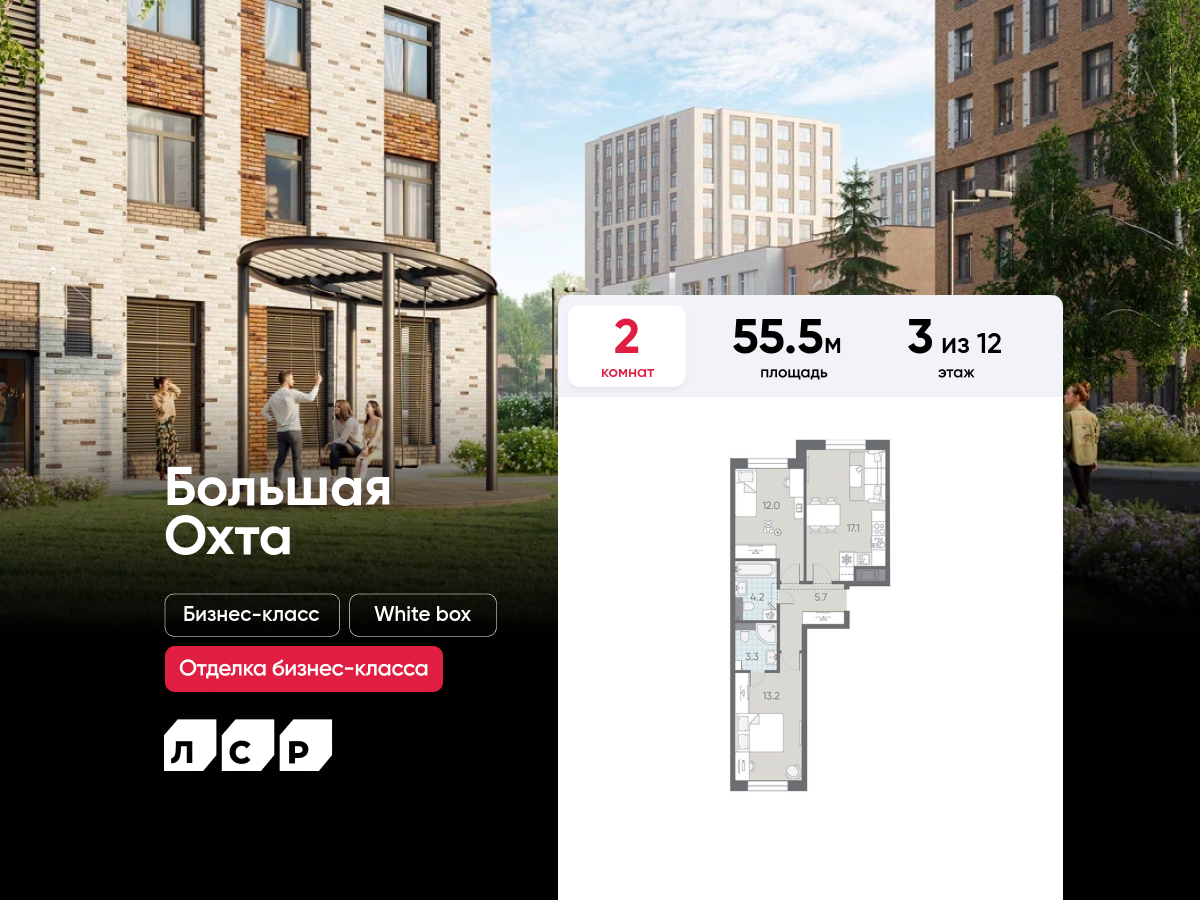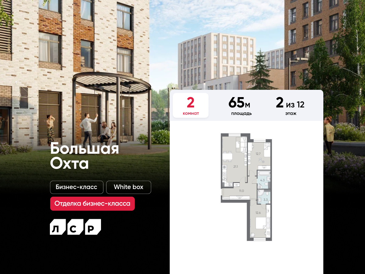 Двухкомнатные квартиры в ЖК «ЛСР. Большая Охта»