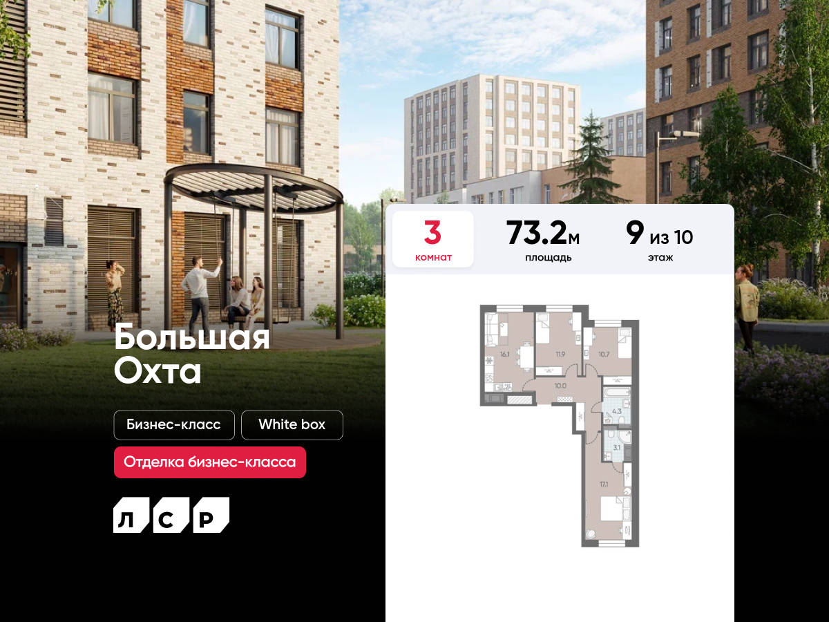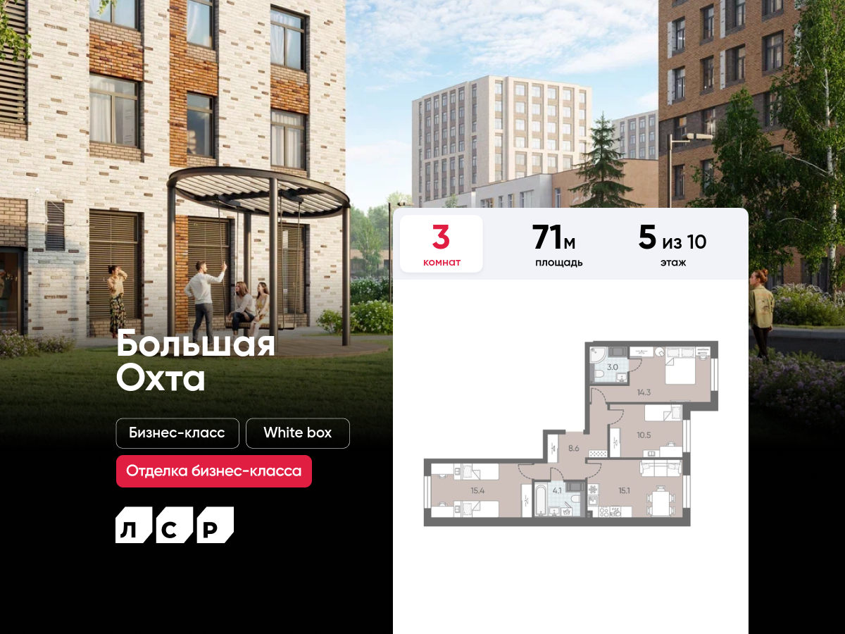 Трехкомнатные квартиры в ЖК «ЛСР. Большая Охта»