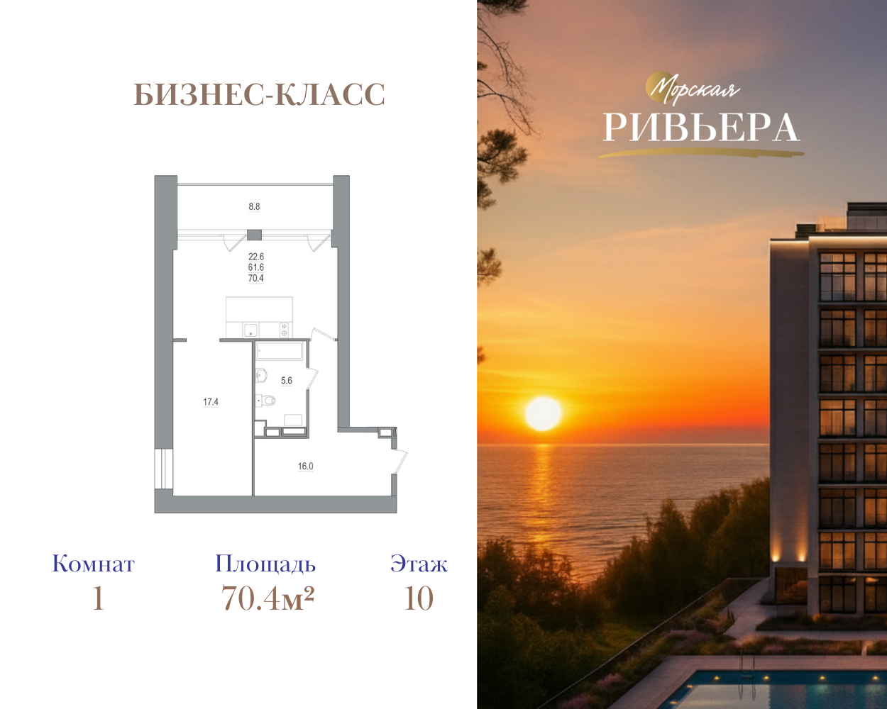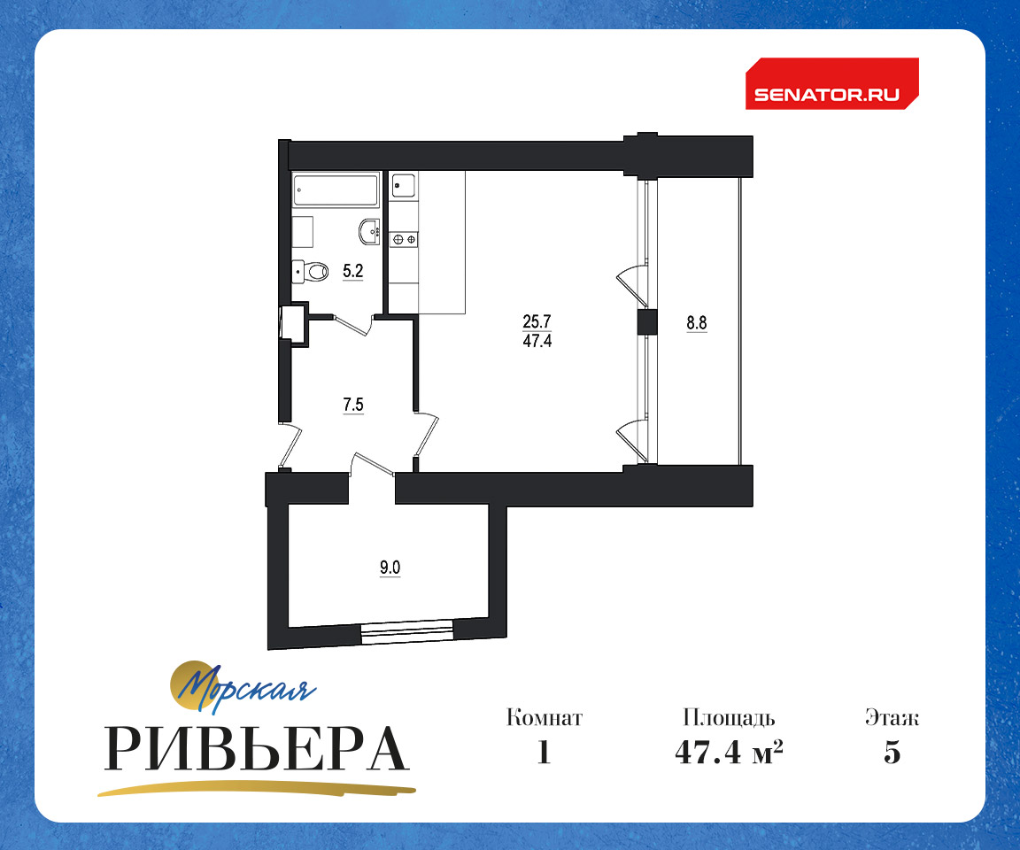 Однокомнатные квартиры в МФК Морская ривьера