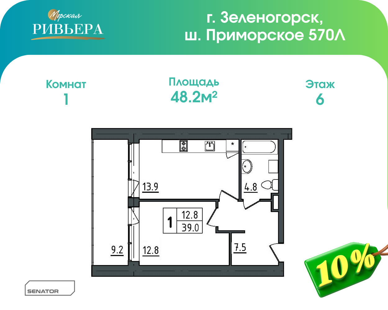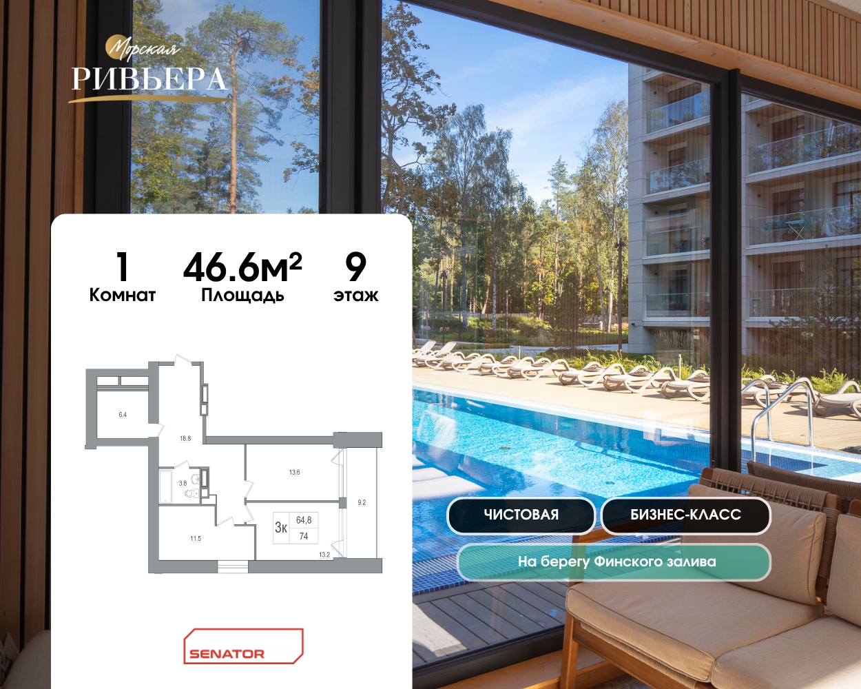 В комплексе всего 13 этажей. Из окон открывается завораживающий вид на Финский залив и многовековой лесной массив.