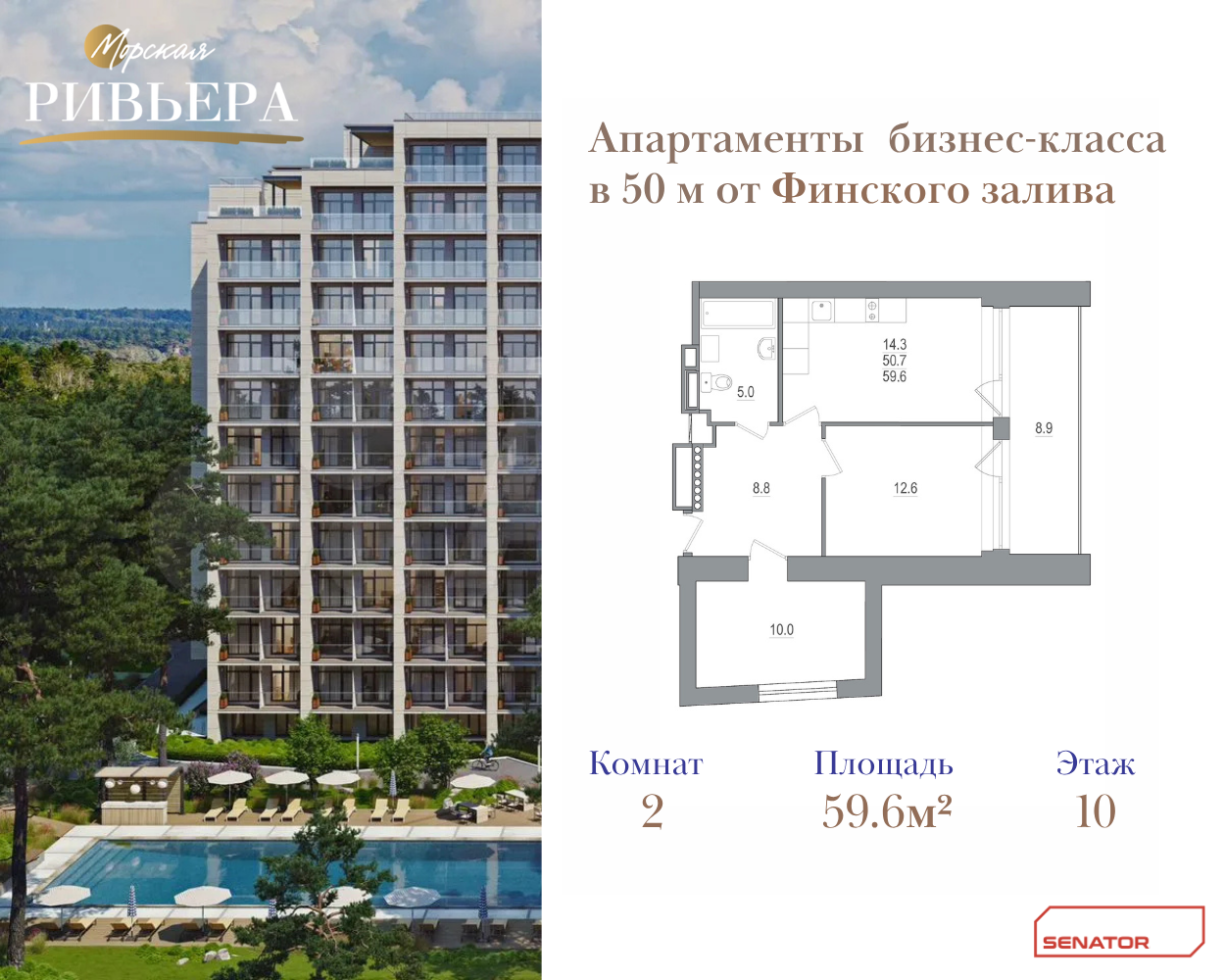 Двухкомнатные квартиры в МФК Морская ривьера