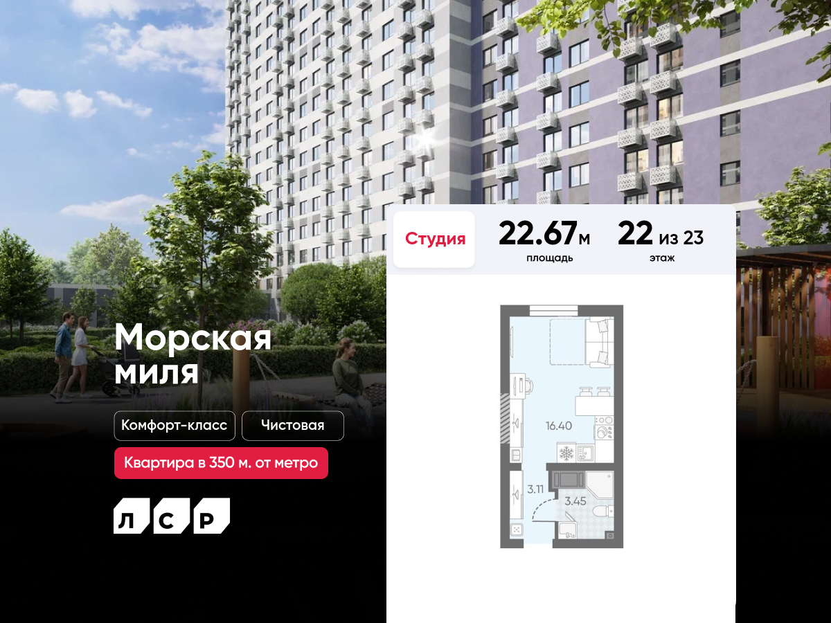 ЖК «Морская миля» - современный жилищный комплекс, который будет построен к 2 квартале 2024 г. и относится к комфорт-классу. Имеет удобное расположение: район Красносельский города Санкт-Петербург, расстояние до ближайшего метро Кировский завод - 6 минут на автомобиле.