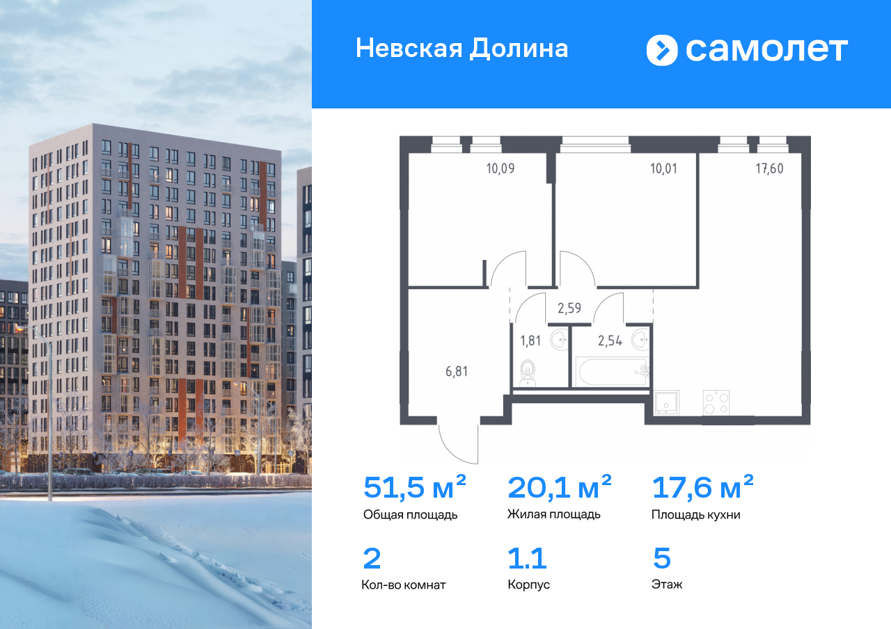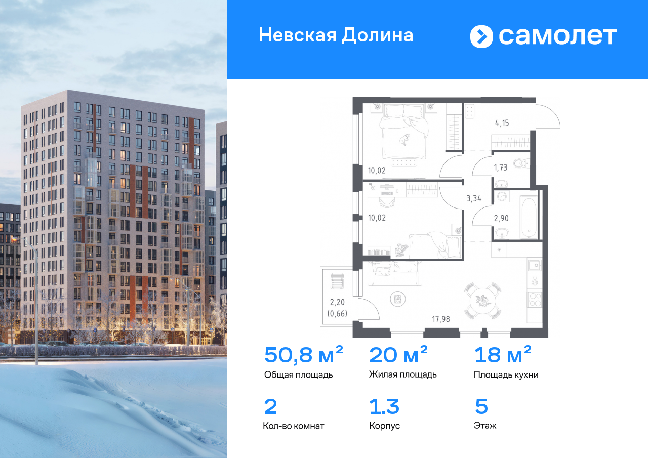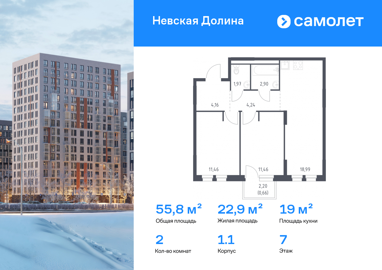 Евро двухкомнатные квартиры в ЖК Невская Долина