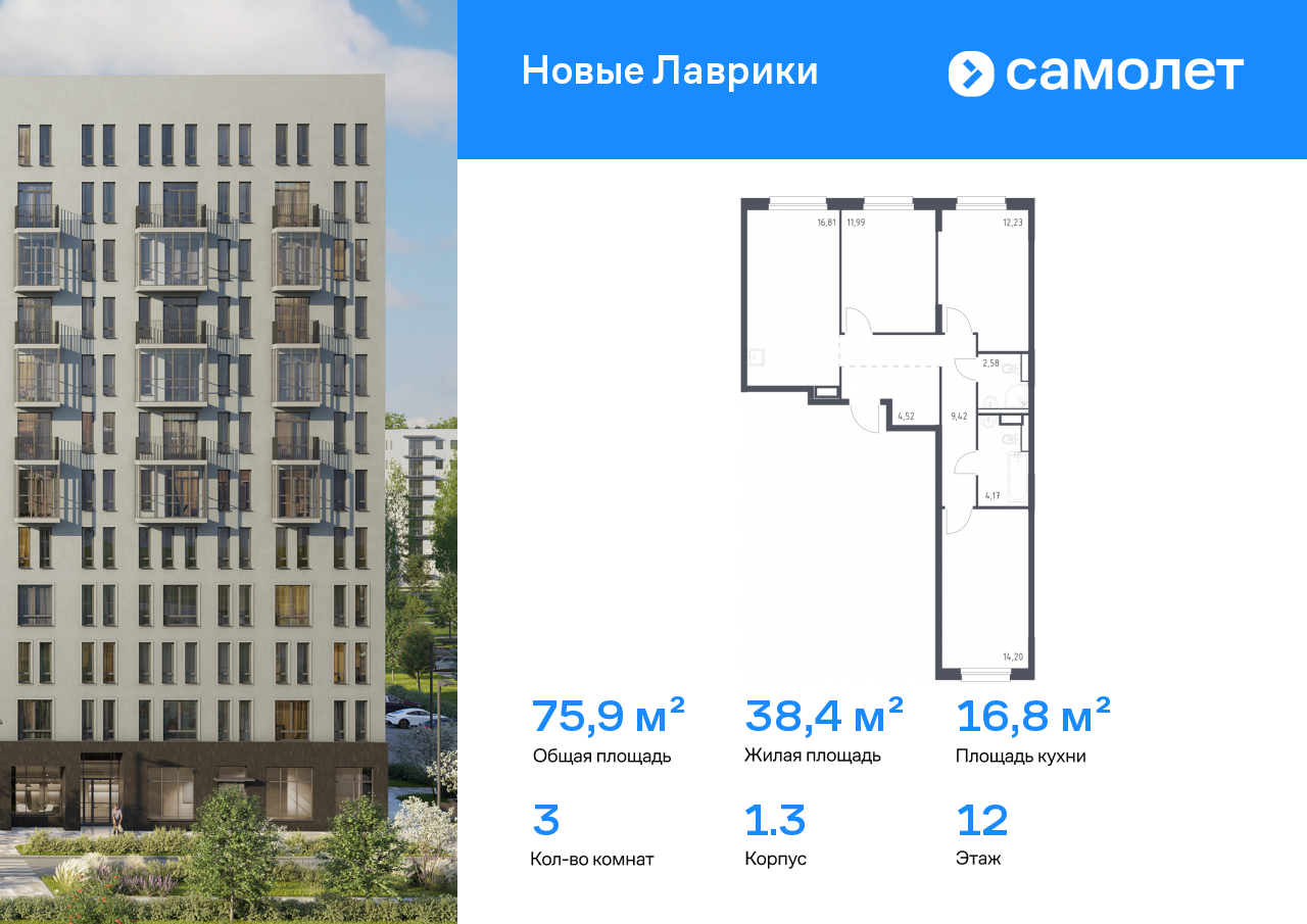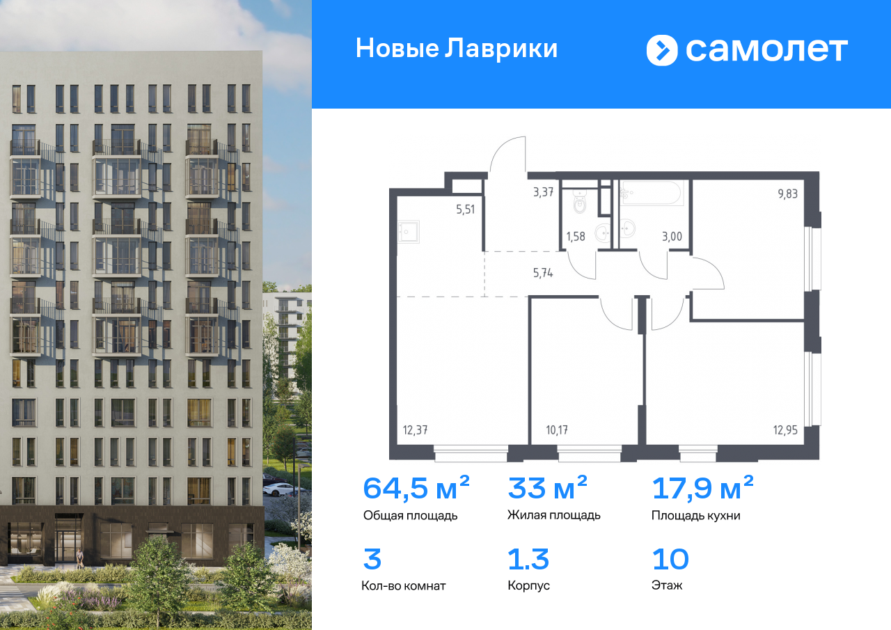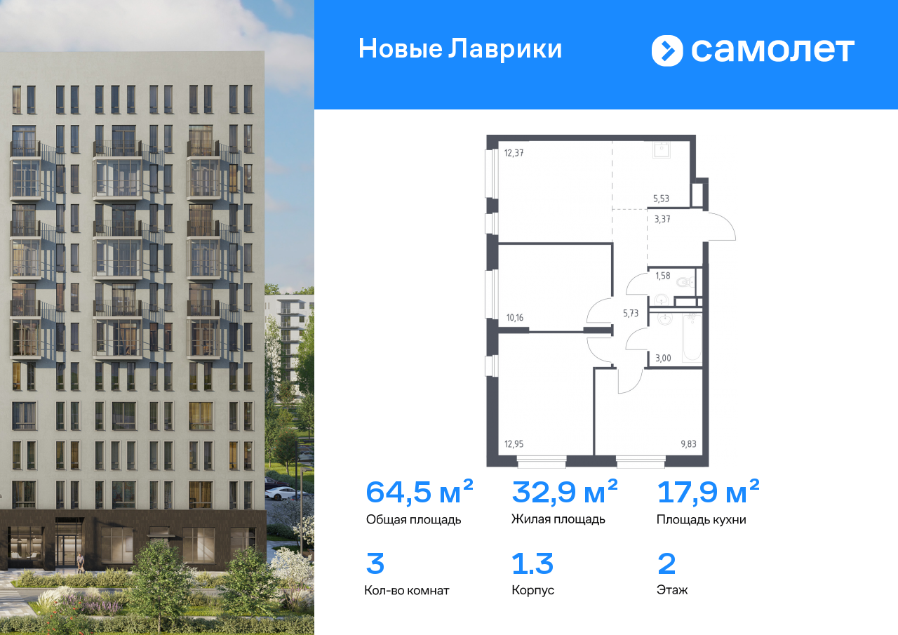 Евро трехкомнатные квартиры в ЖК Новые Лаврики