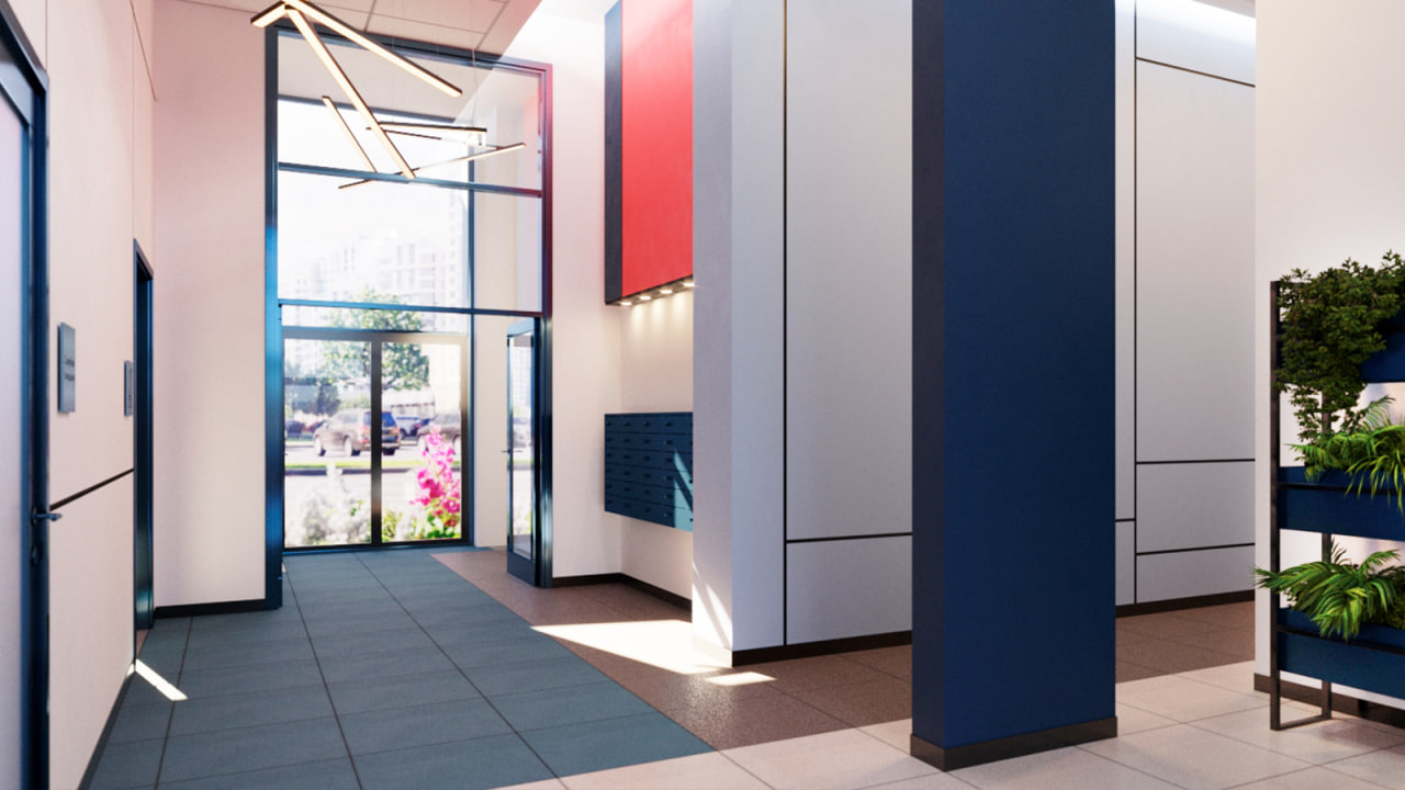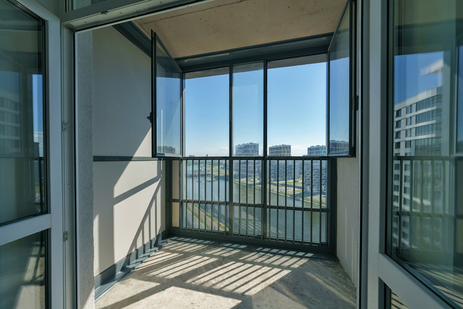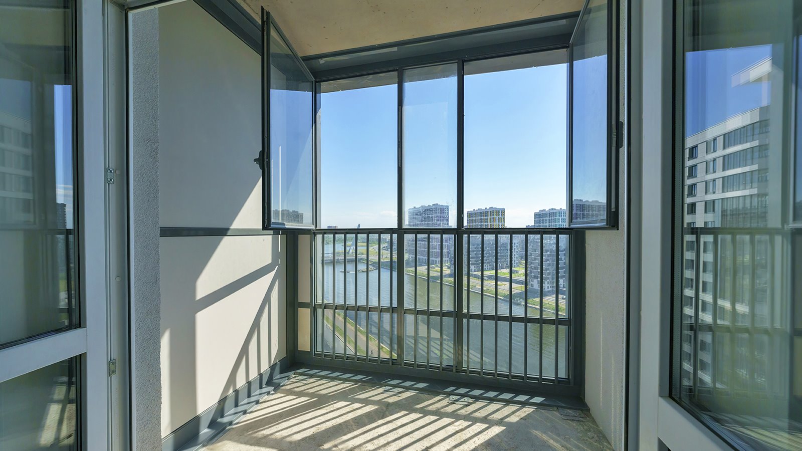 Жилой комплекс представляет собой группу разносекционных монолитных зданий с витражным остеклением балконов и жилых комнат. Из окон большинства квартир открывается вид на воду залива и каналов, на Южно-Приморский парк, мосты и нарядные современные кварталы.