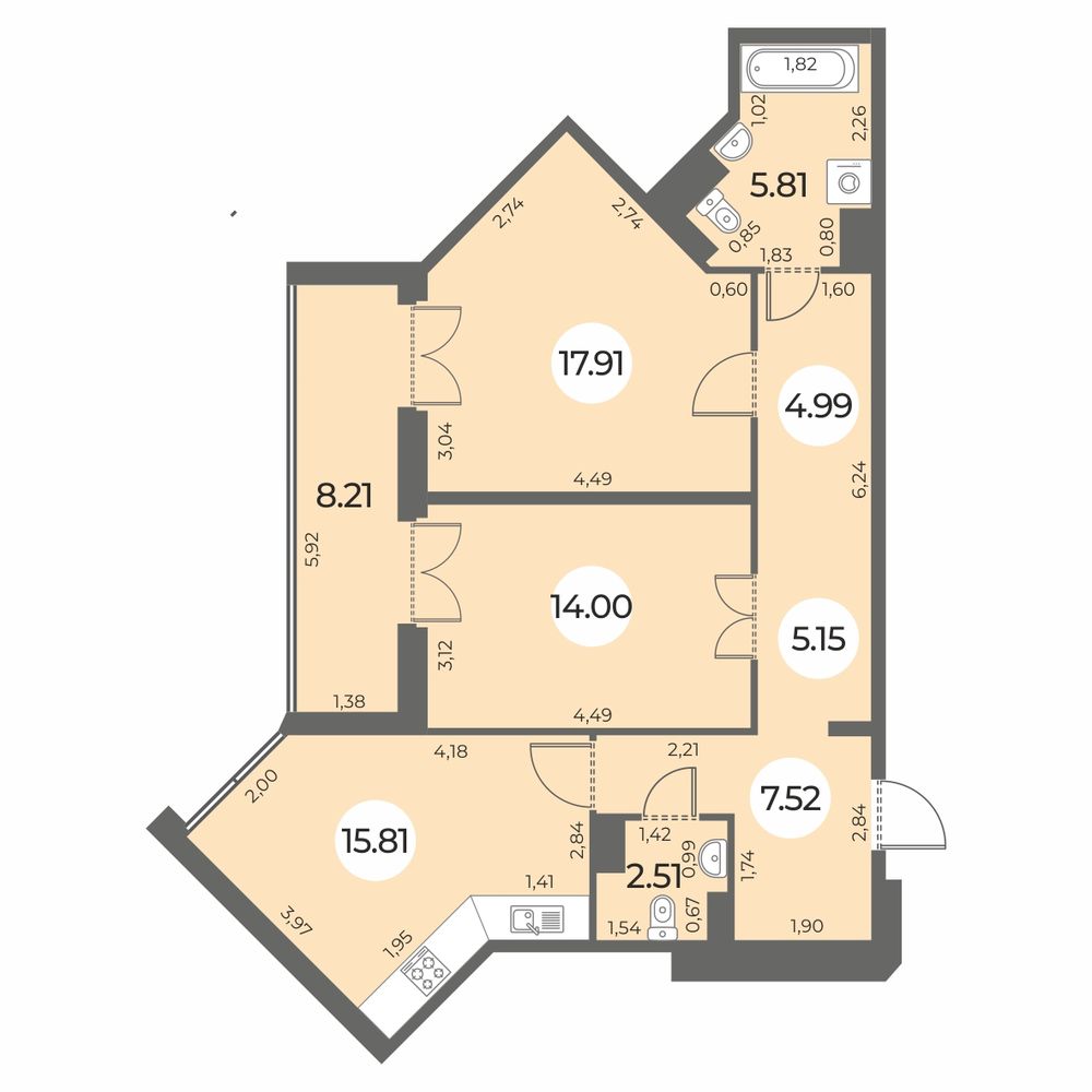 Застройщиком предлагаются квартиры различных планировок — от студий до четырехкомнатных общей площадью от 26 до 127 кв. м. В продаже квартиры в готовых и строящихся корпусах. Отделка: подготовка под чистовую отделку и полная чистовая отделка.