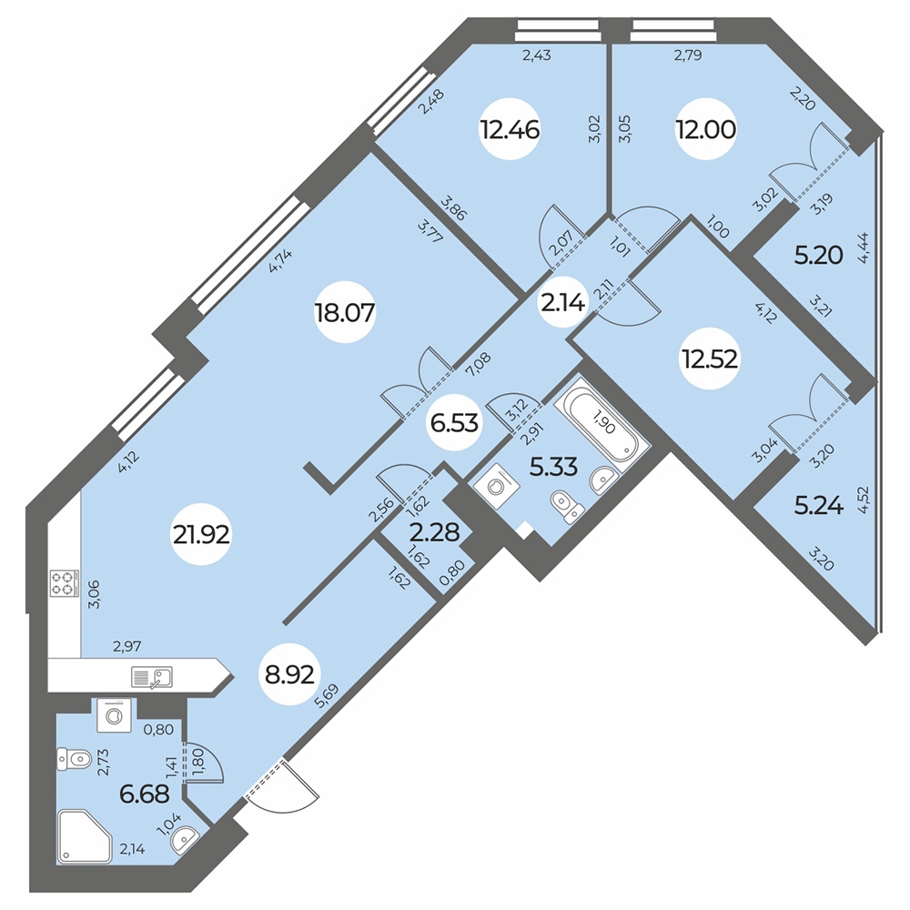 Четырехкомнатные квартиры в ЖК «Огни Залива»