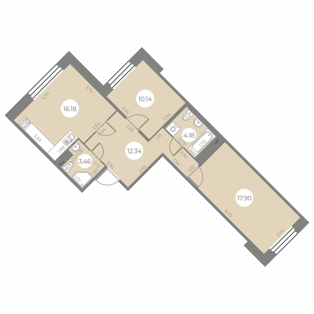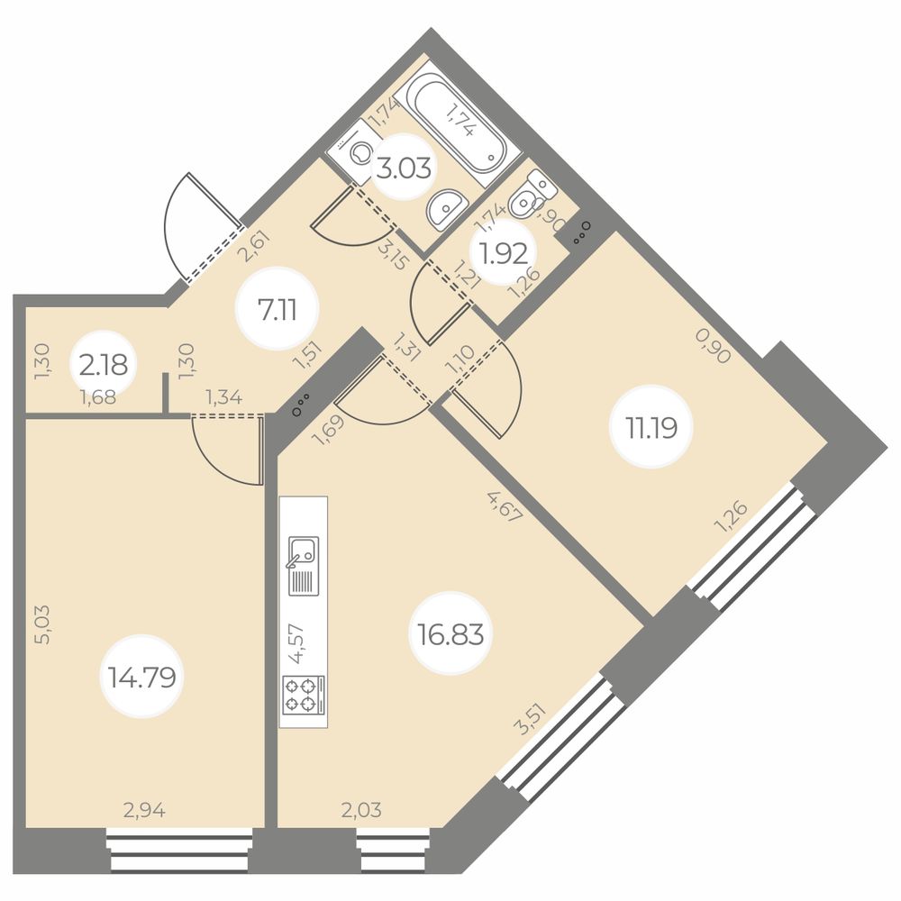 Евро двухкомнатные квартиры в ЖК «Огни Залива»