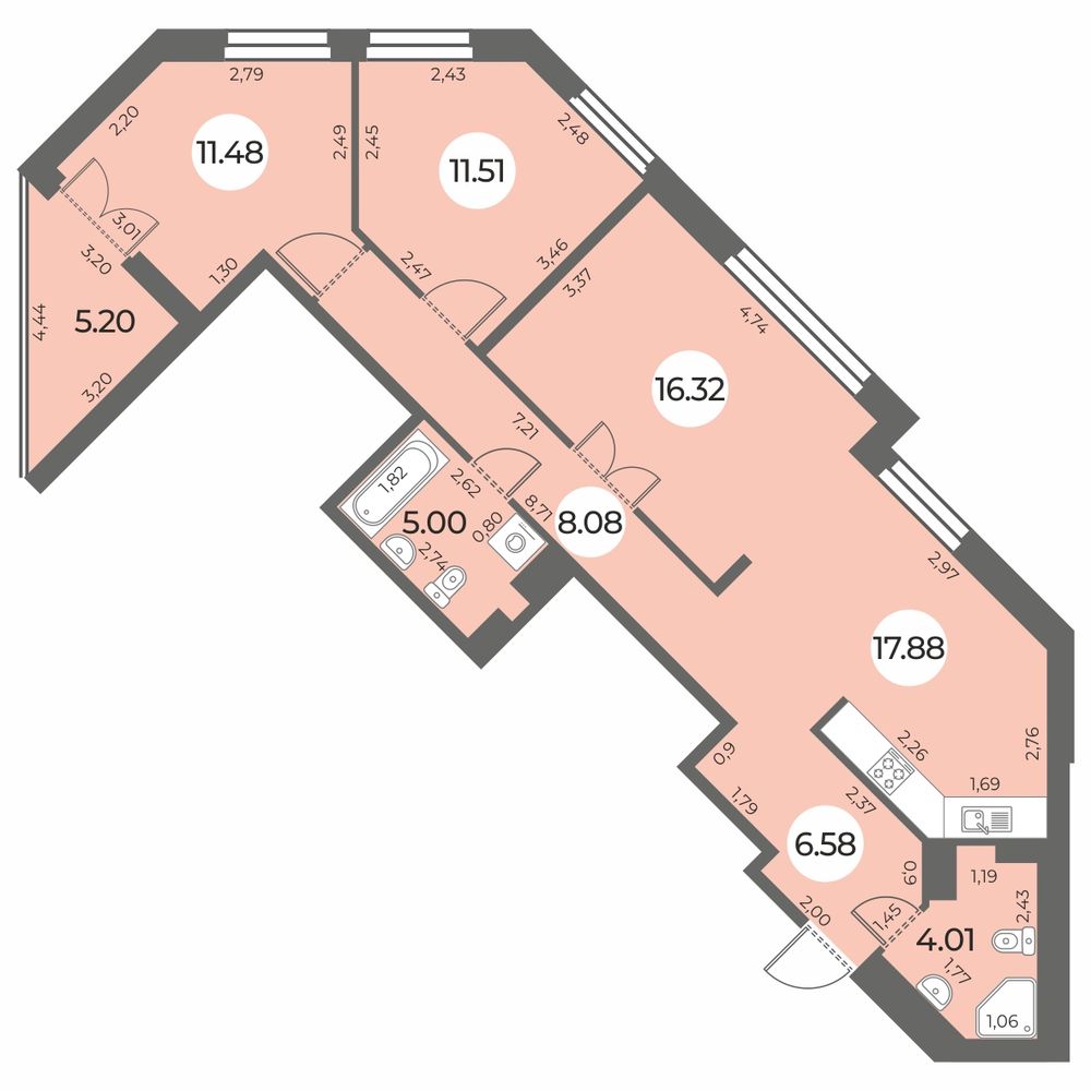 Евро трехкомнатные квартиры в ЖК «Огни Залива»