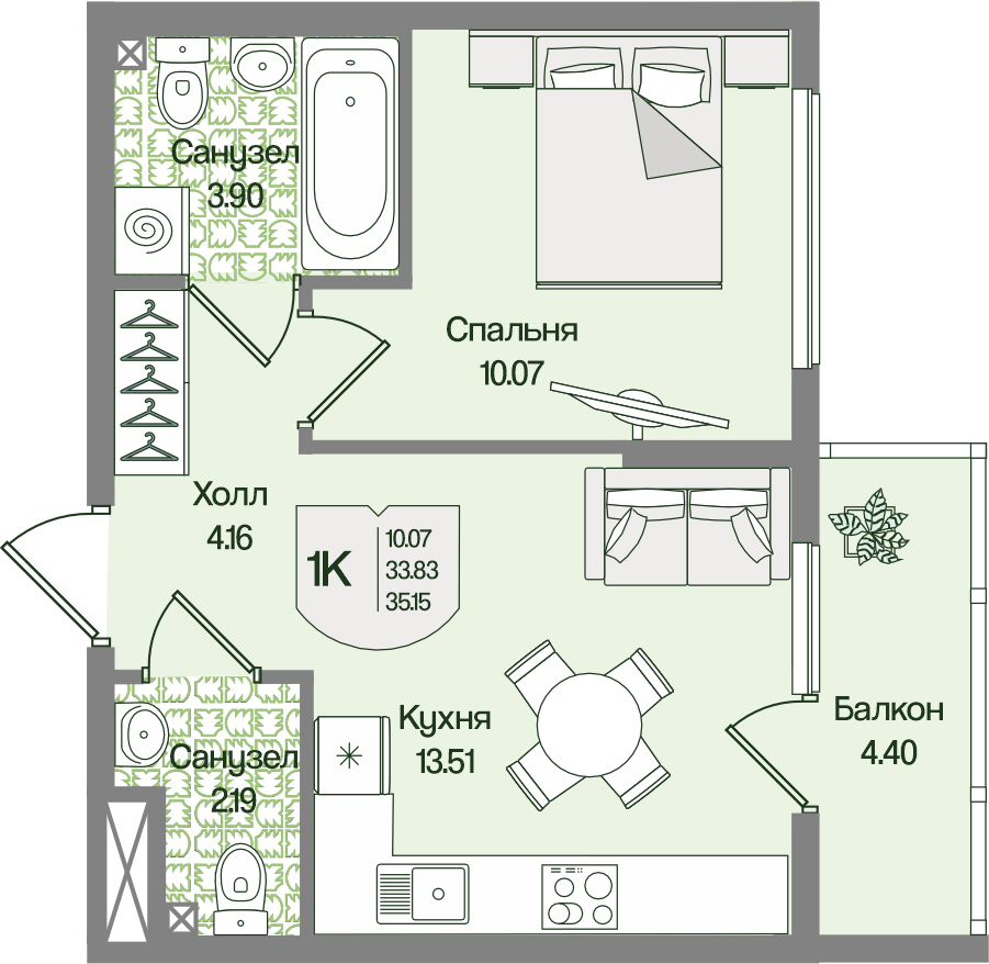 Природа рядом: лесной массив и хорошая экологияБлизость к Санкт-Петербургу — 7 км до города