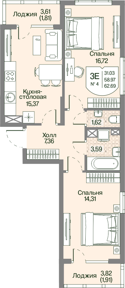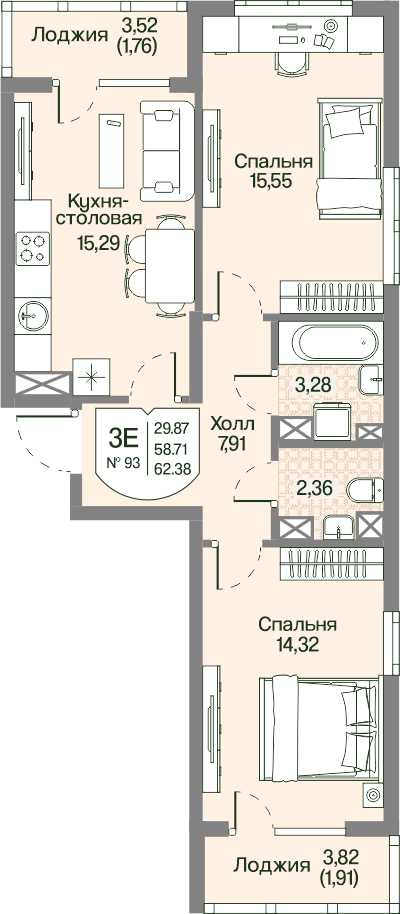Двухкомнатные квартиры в ЖК Охтинские высоты