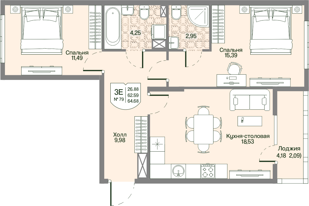 Евро двухкомнатные квартиры в ЖК Охтинские высоты