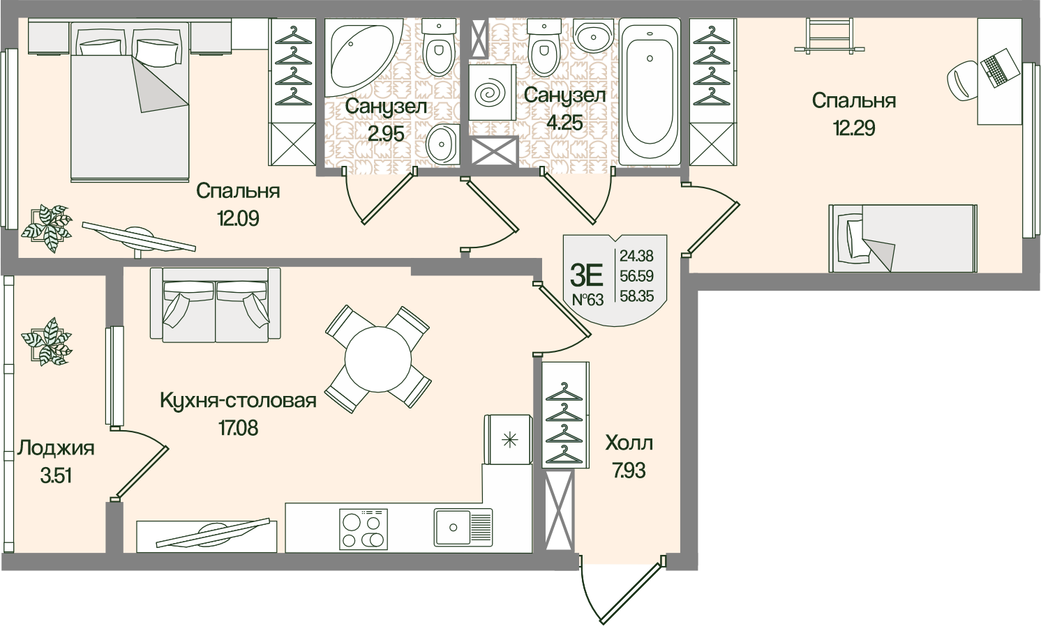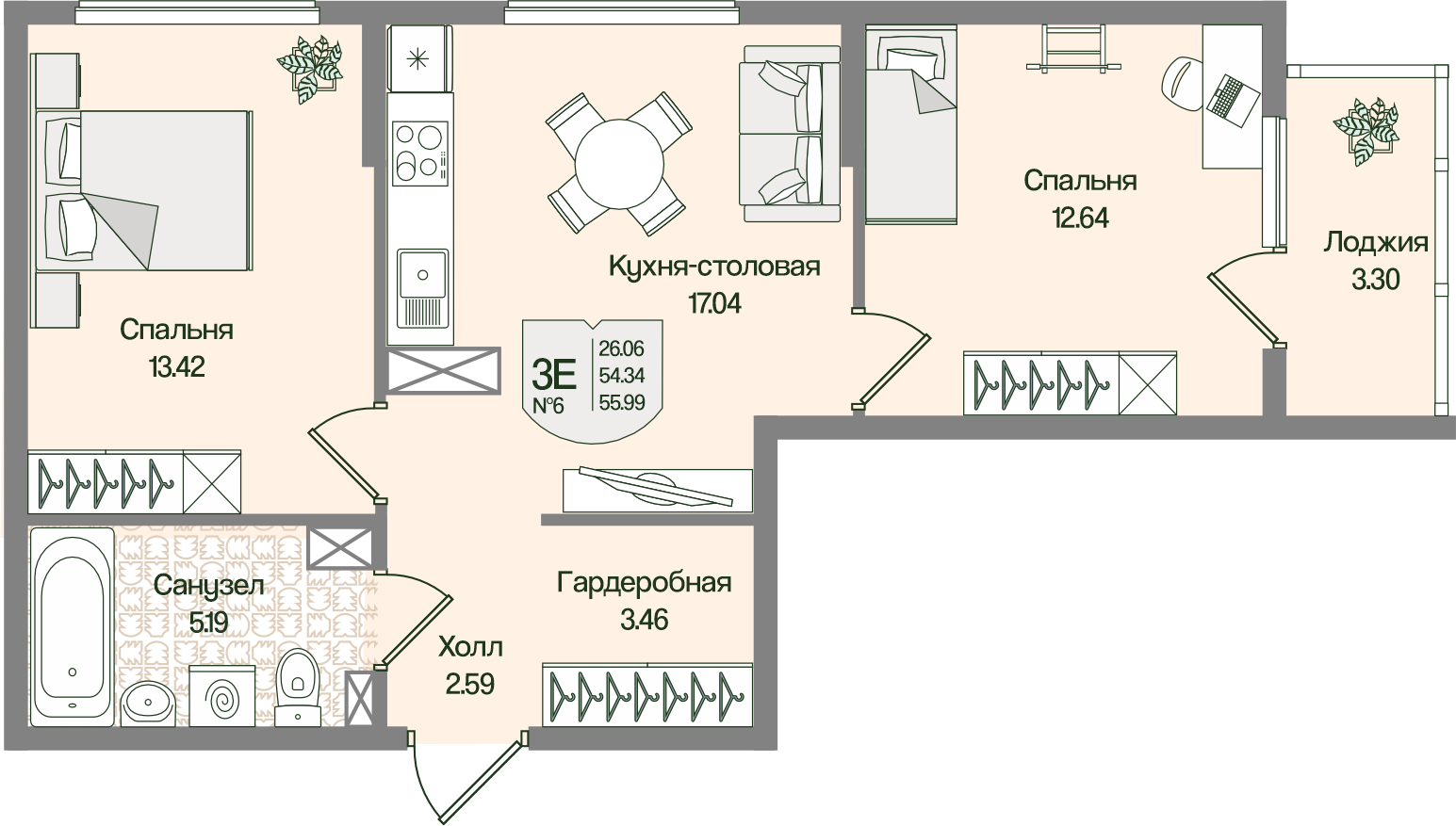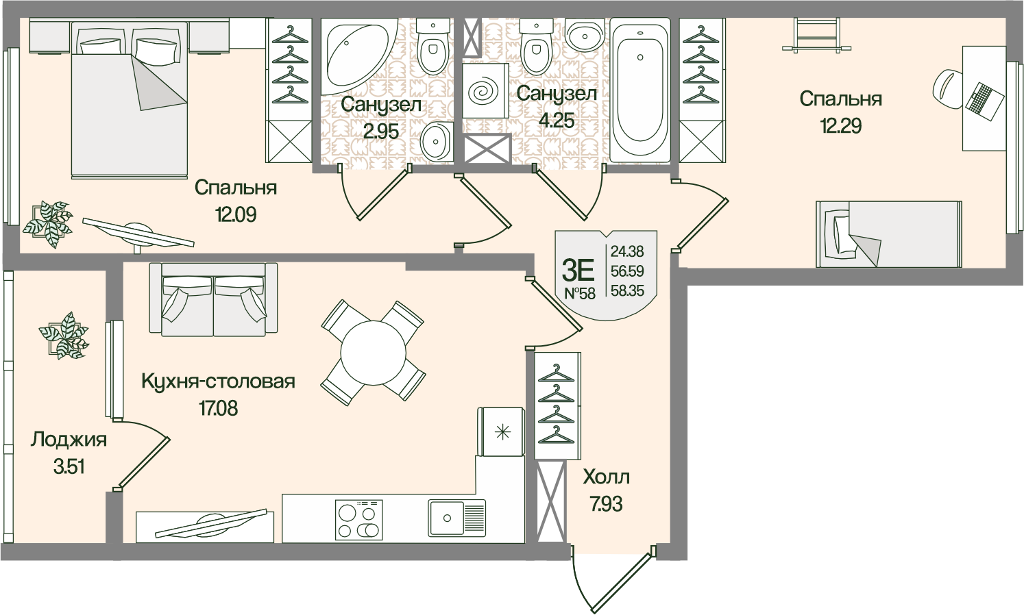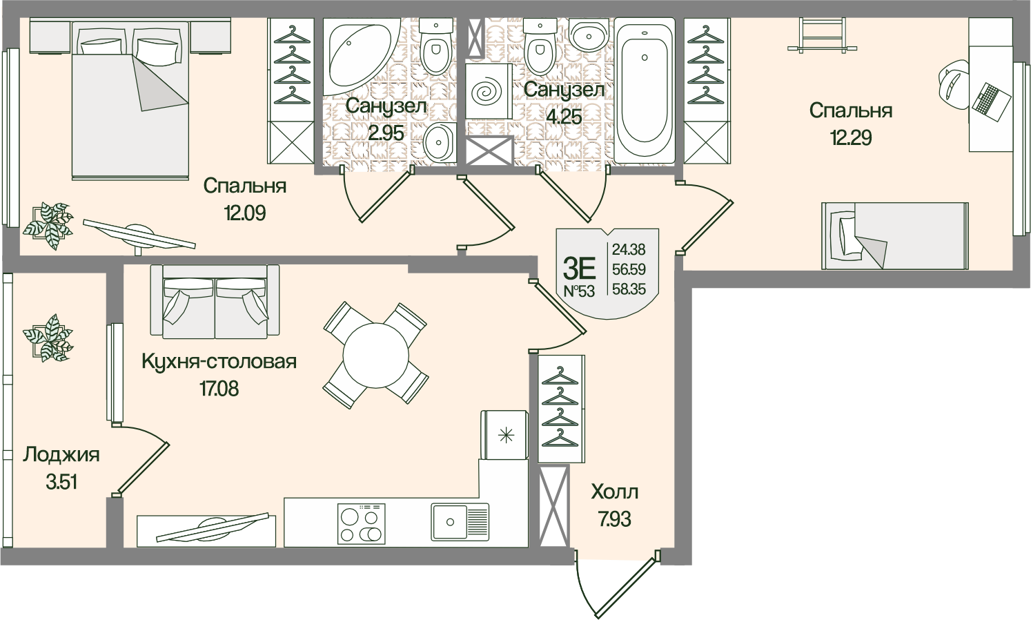 Евро двухкомнатные квартиры в ЖК Охтинские высоты