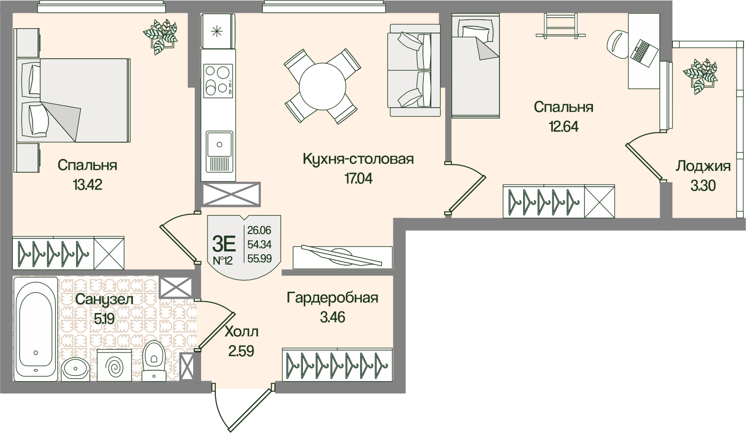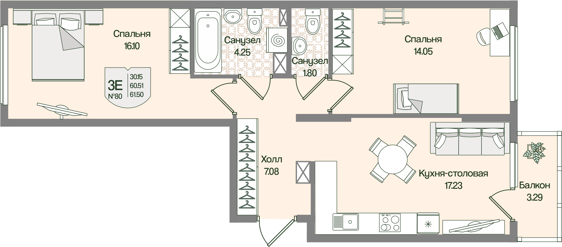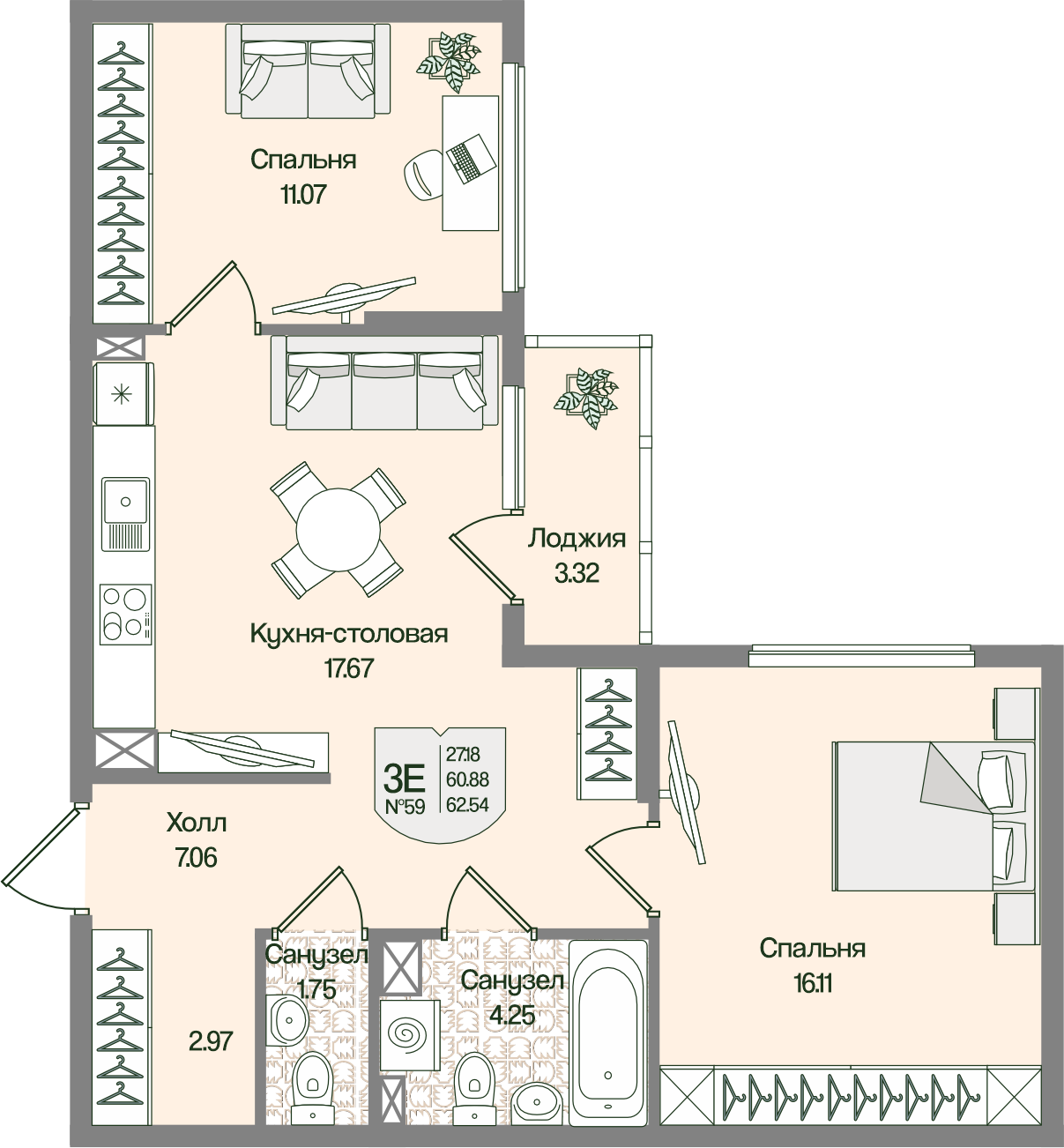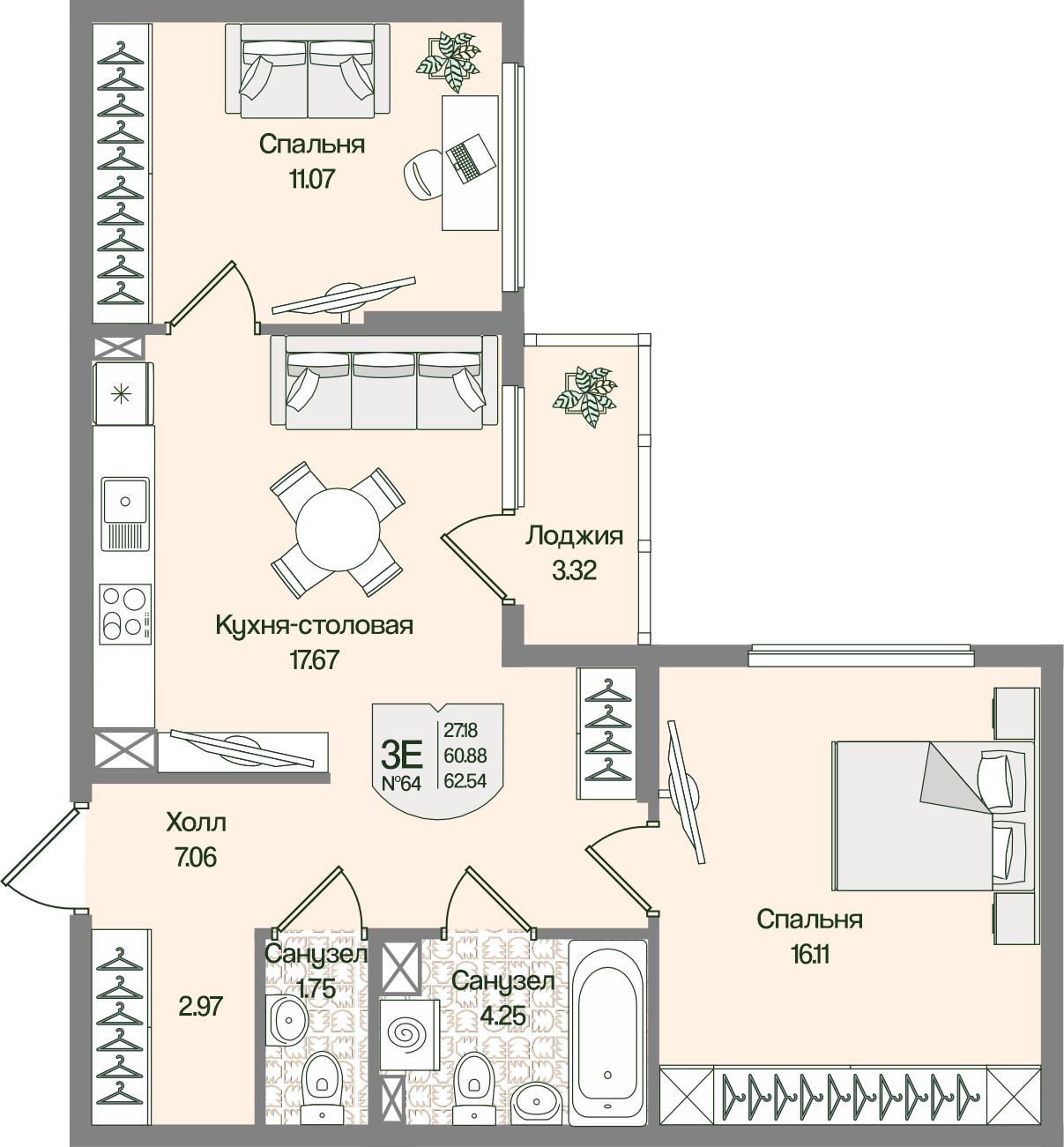 Евро двухкомнатные квартиры в ЖК Охтинские высоты
