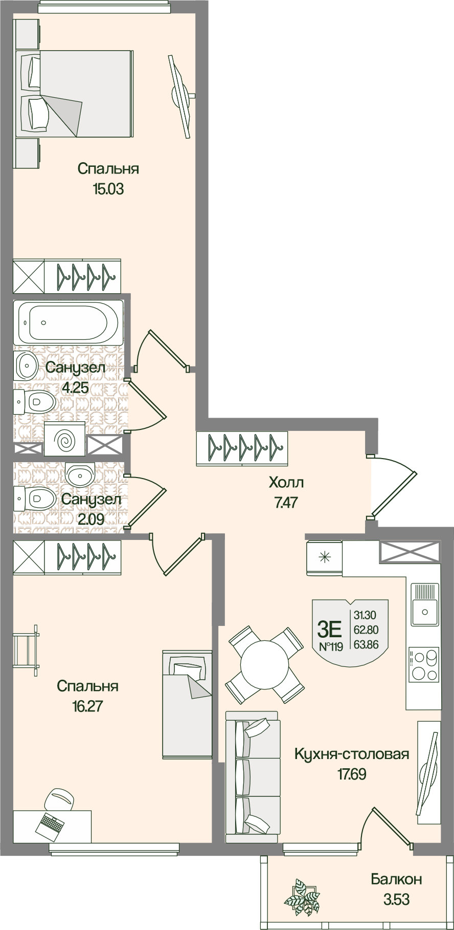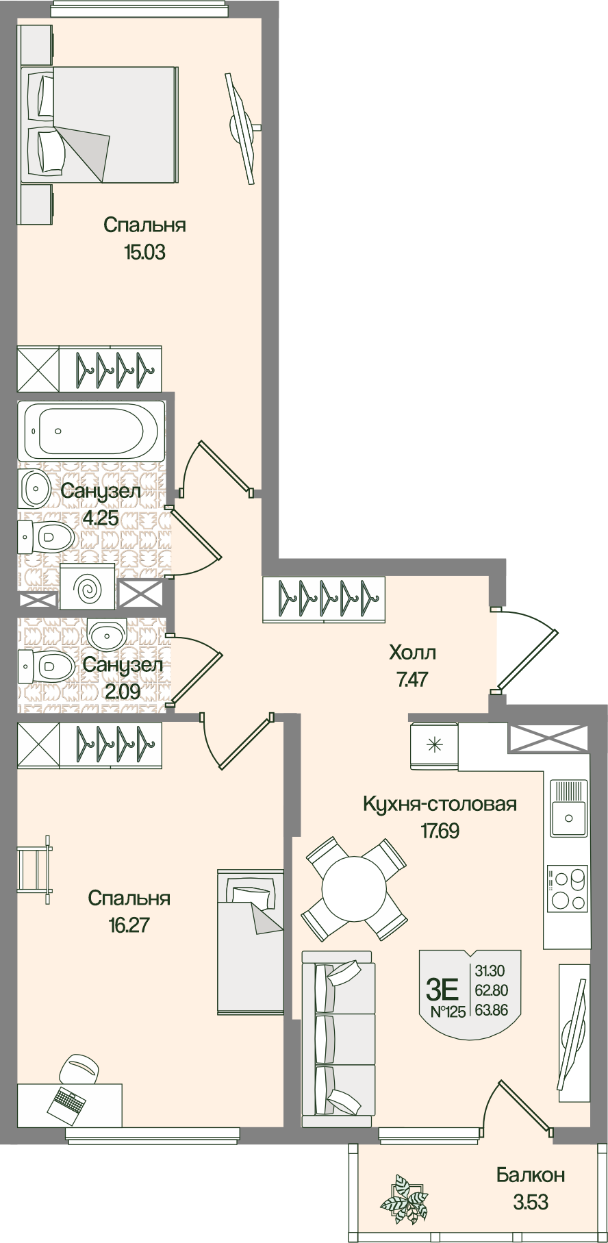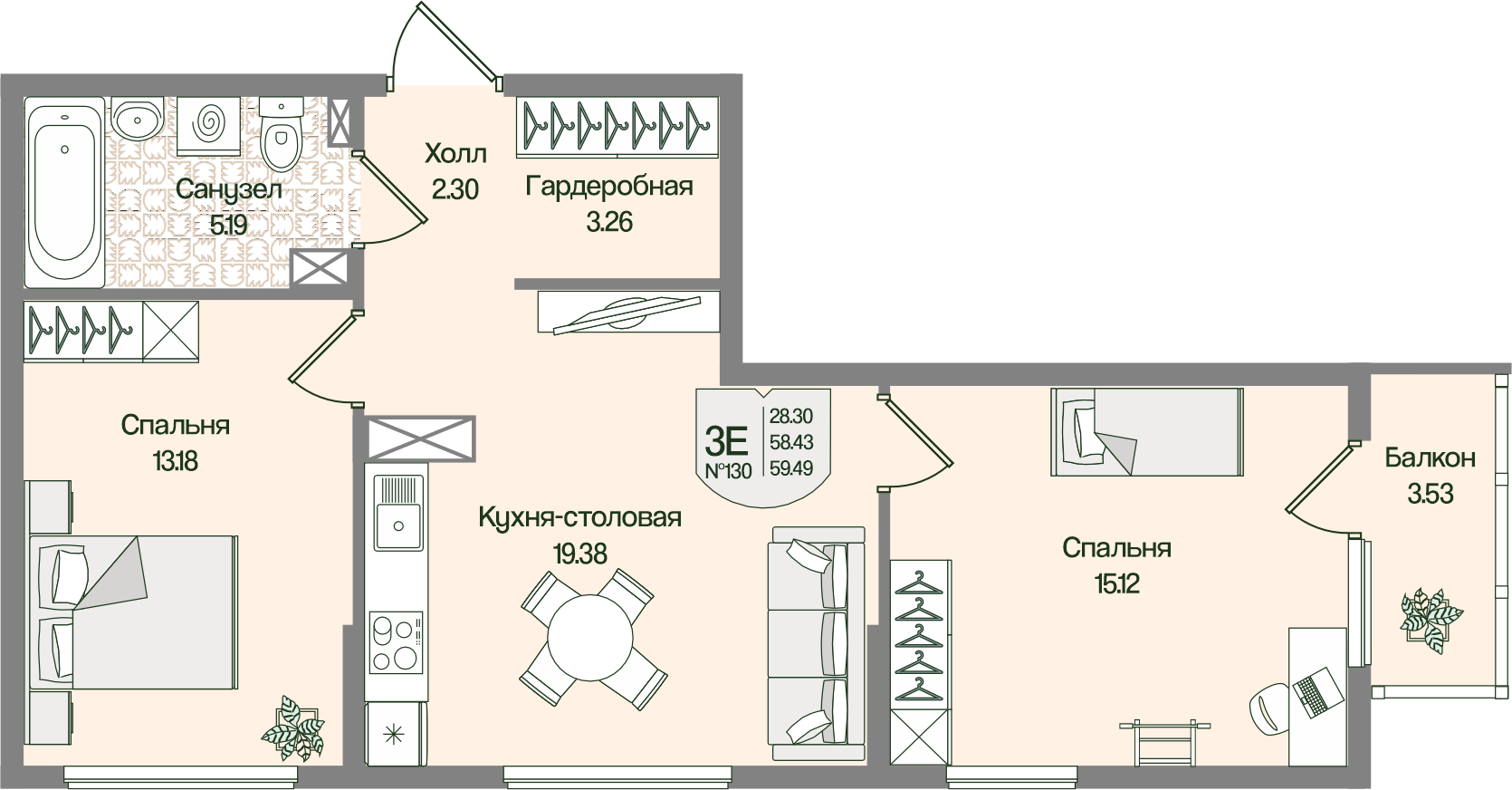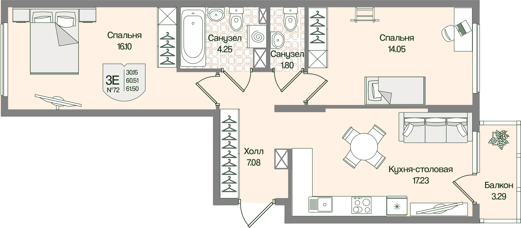 Евро двухкомнатные квартиры в ЖК Охтинские высоты