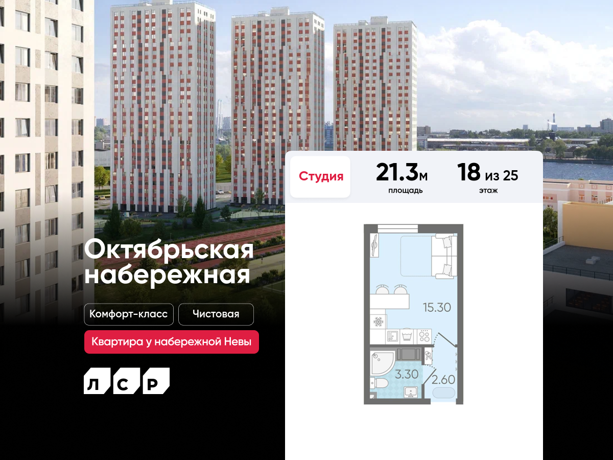 Квартиры-студии в ЖК «Октябрьская набережная»