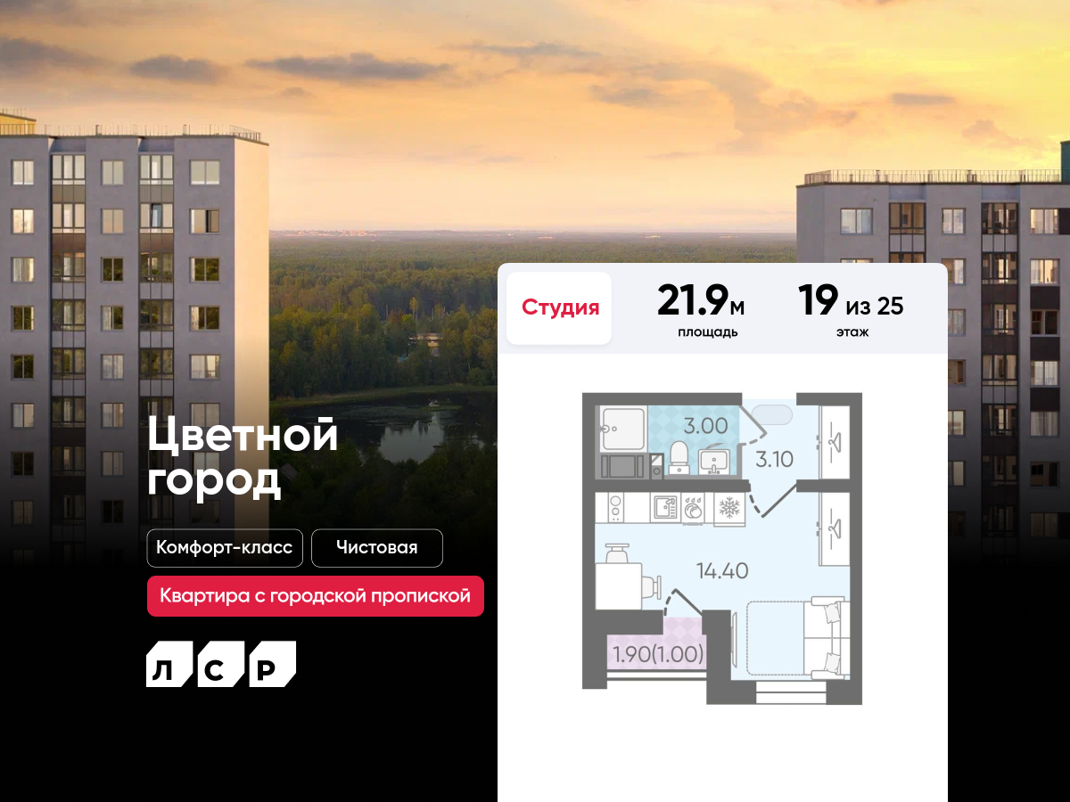 Квартиры-студии в ЖК «Пейзажный квартал» (Цветной город)
