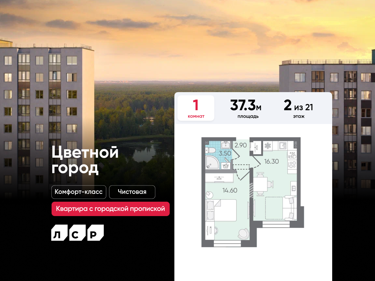 Однокомнатные квартиры в ЖК «Пейзажный квартал» (Цветной город) - страница 17