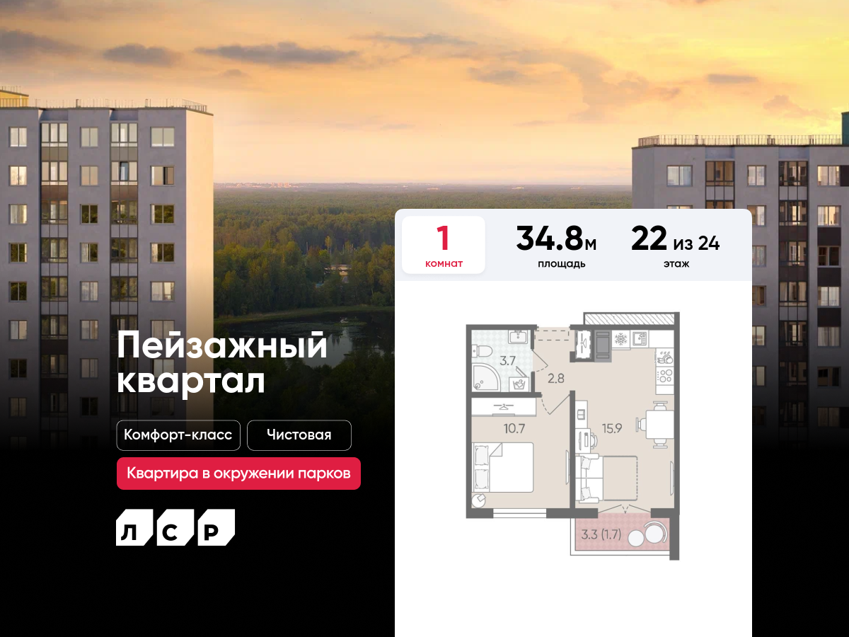 Однокомнатные квартиры в ЖК «Пейзажный квартал» (Цветной город) - страница 9