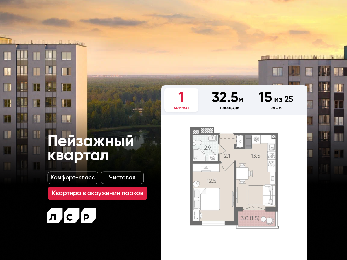Однокомнатные квартиры в ЖК «Пейзажный квартал» (Цветной город)