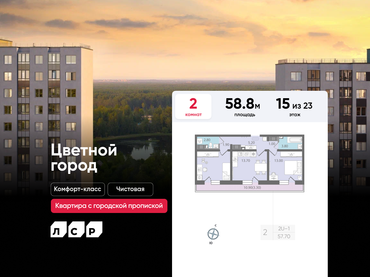 Двухкомнатные квартиры в ЖК «Пейзажный квартал» (Цветной город)