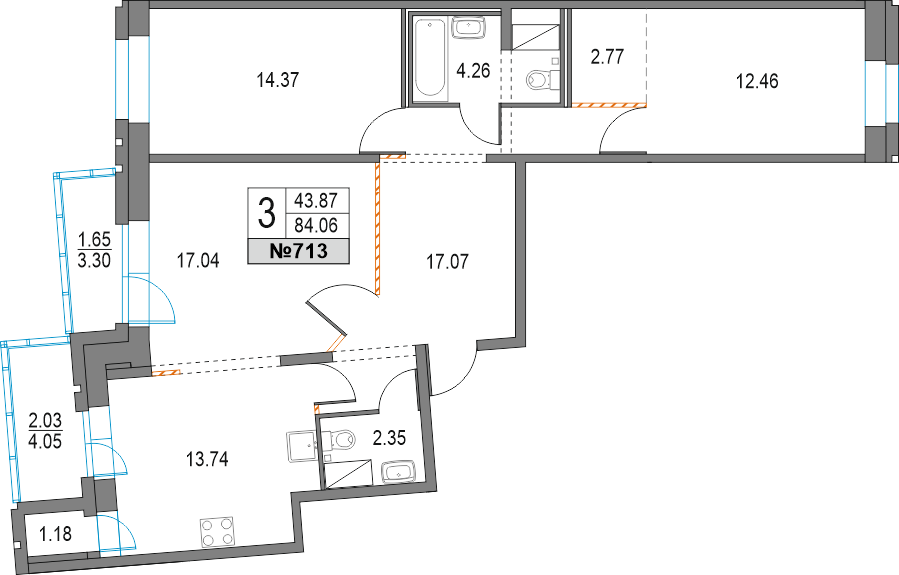 3-комнатная (84.06м2)