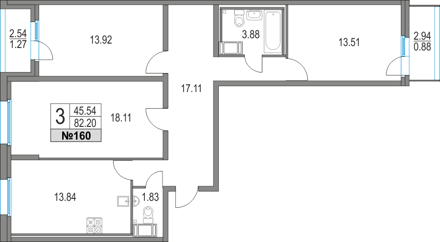 Трехкомнатные квартиры в ЖК «Приморский квартал»