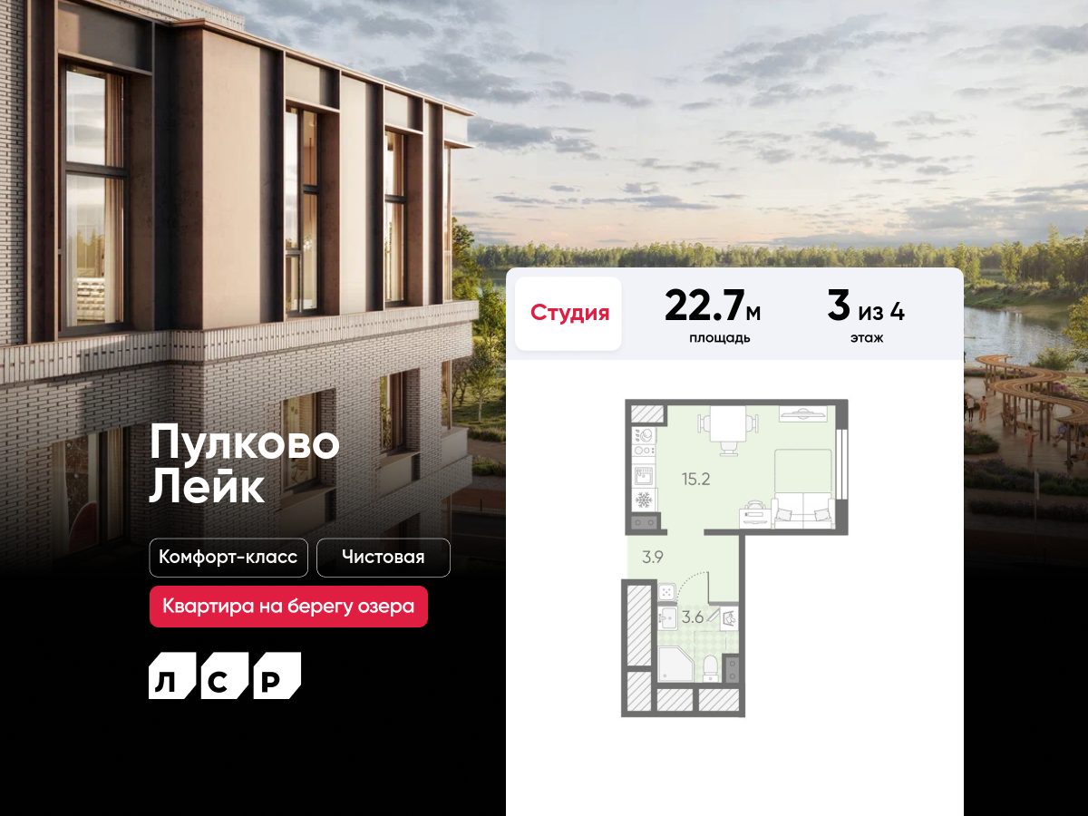 Квартиры-студии в ЖК Пулково Lake (Лэйк)