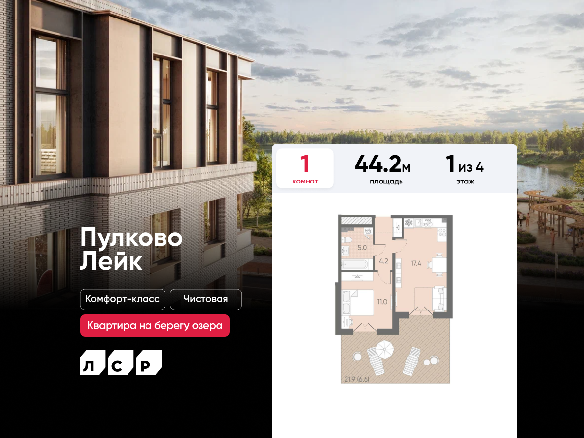 Однокомнатные квартиры в ЖК Пулково Lake (Лэйк)