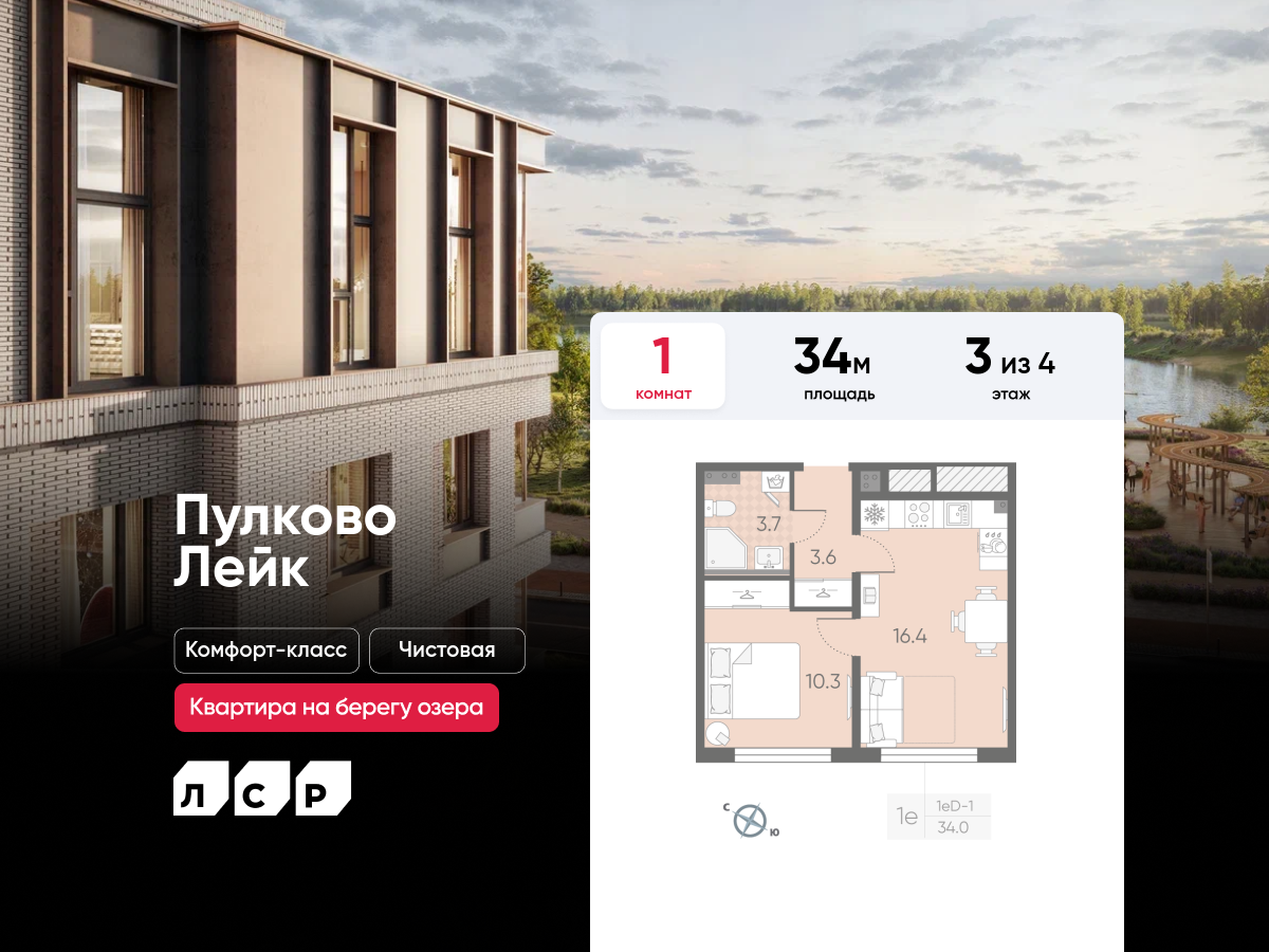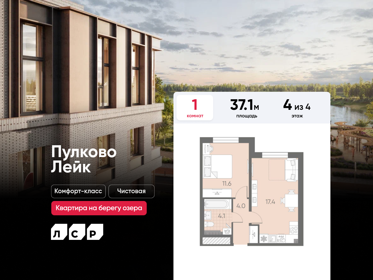Однокомнатные квартиры в ЖК Пулково Lake (Лэйк)