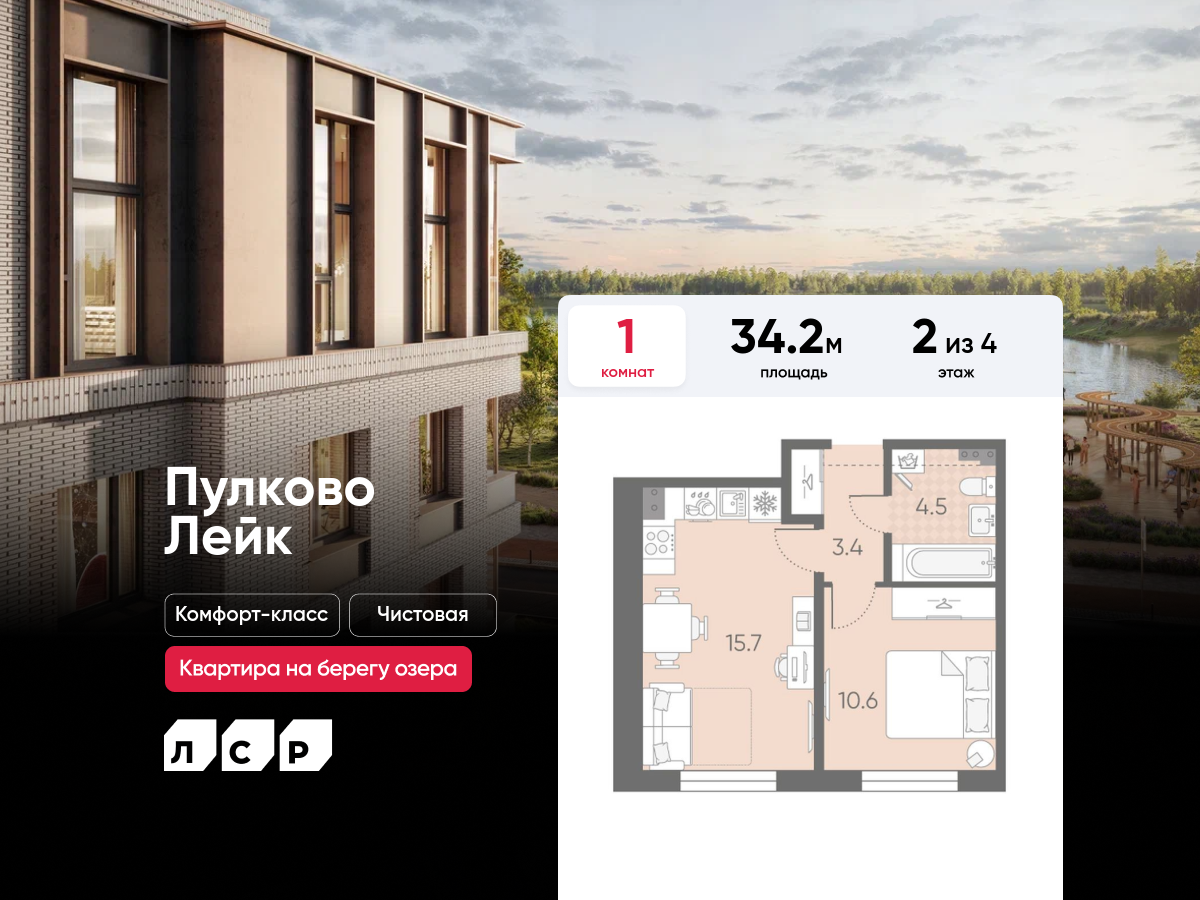 Однокомнатные квартиры в ЖК Пулково Lake (Лэйк)