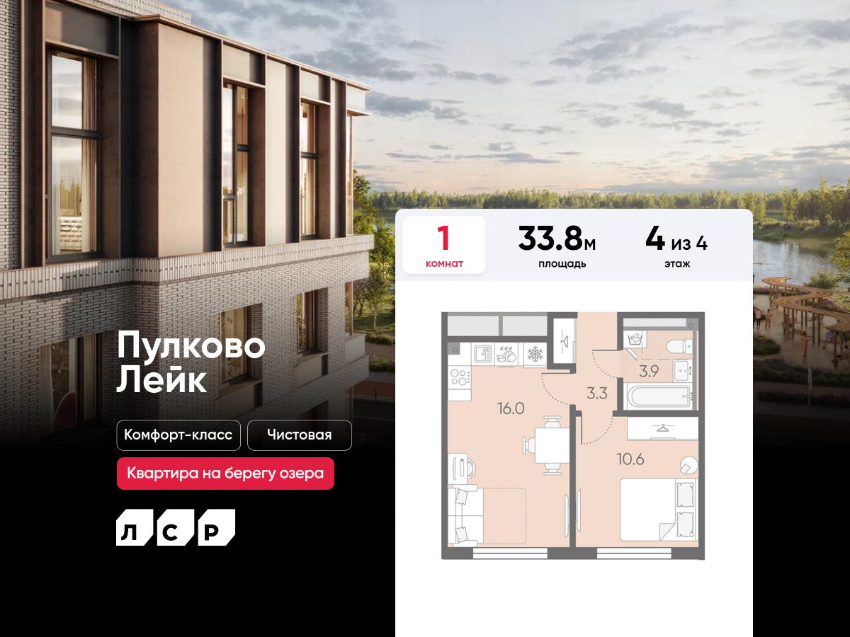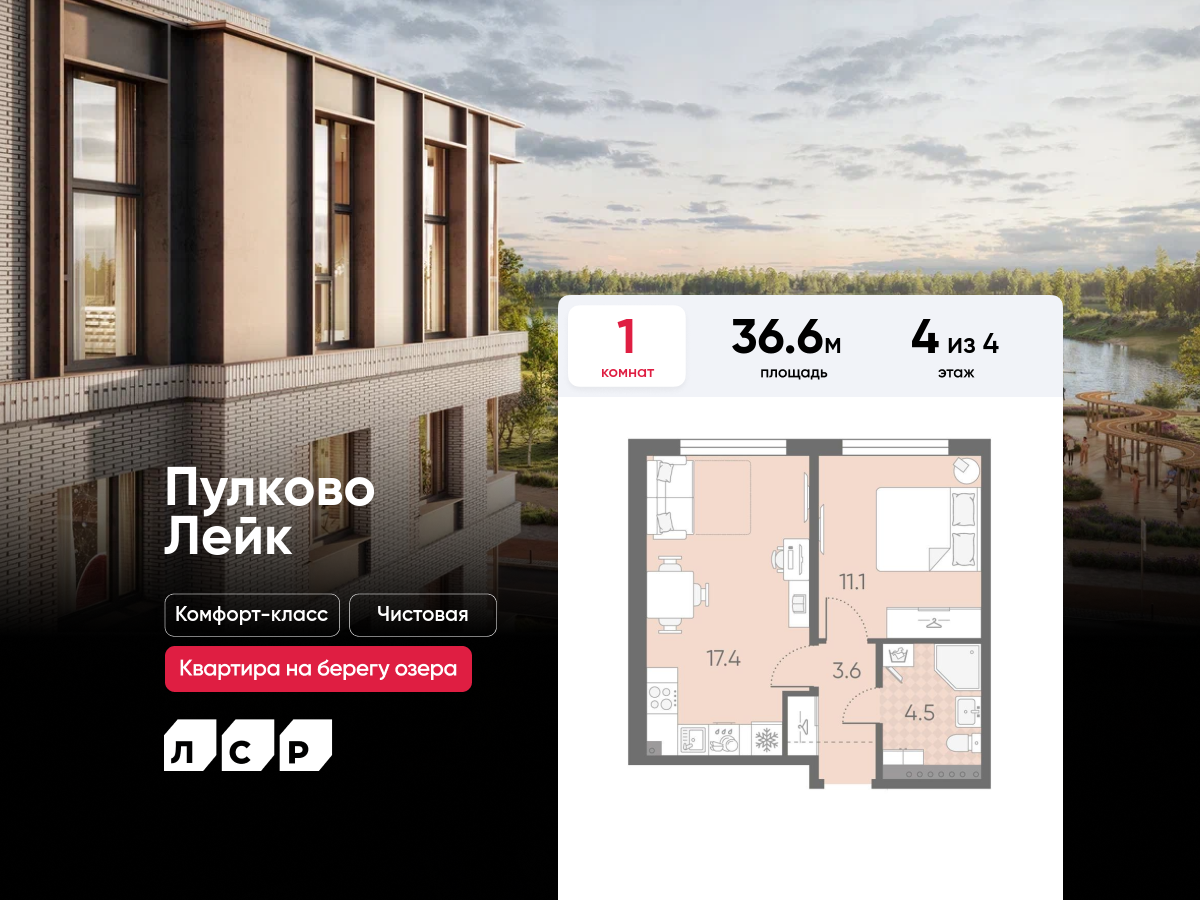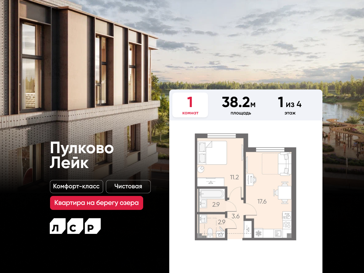 Однокомнатные квартиры в ЖК Пулково Lake (Лэйк)