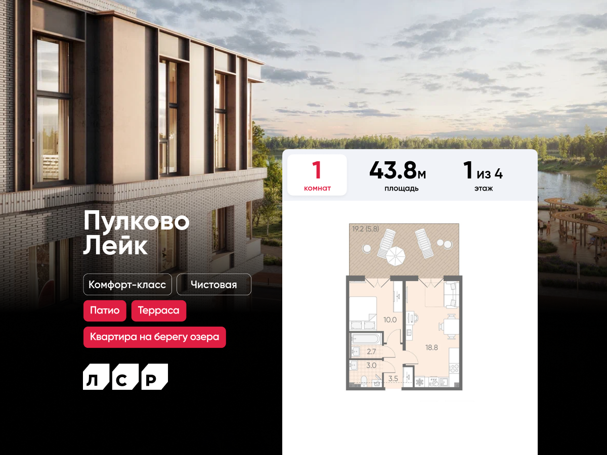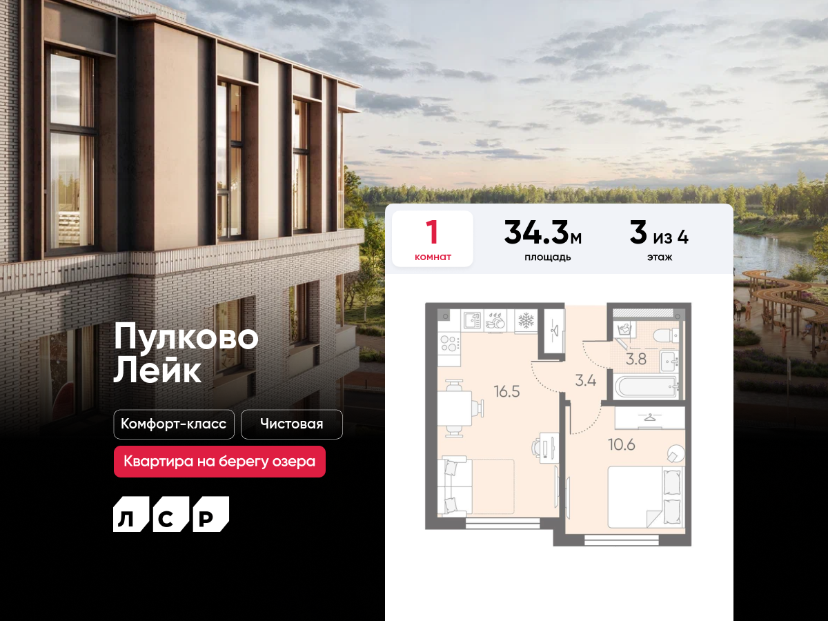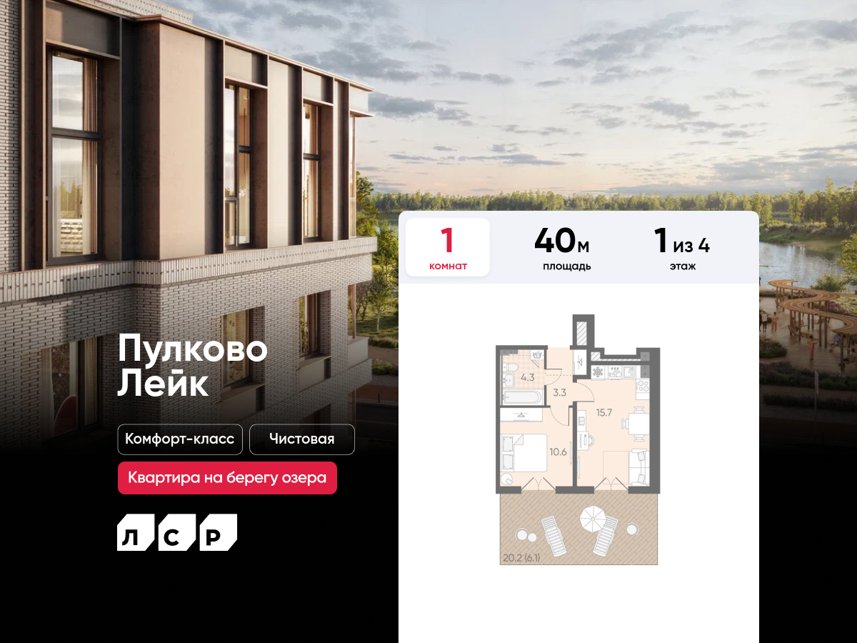 Однокомнатные квартиры в ЖК Пулково Lake (Лэйк)