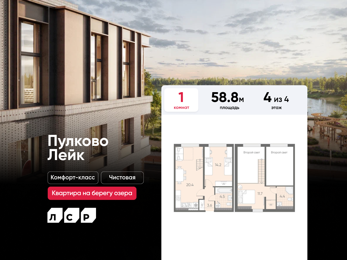 Однокомнатные квартиры в ЖК Пулково Lake (Лэйк)