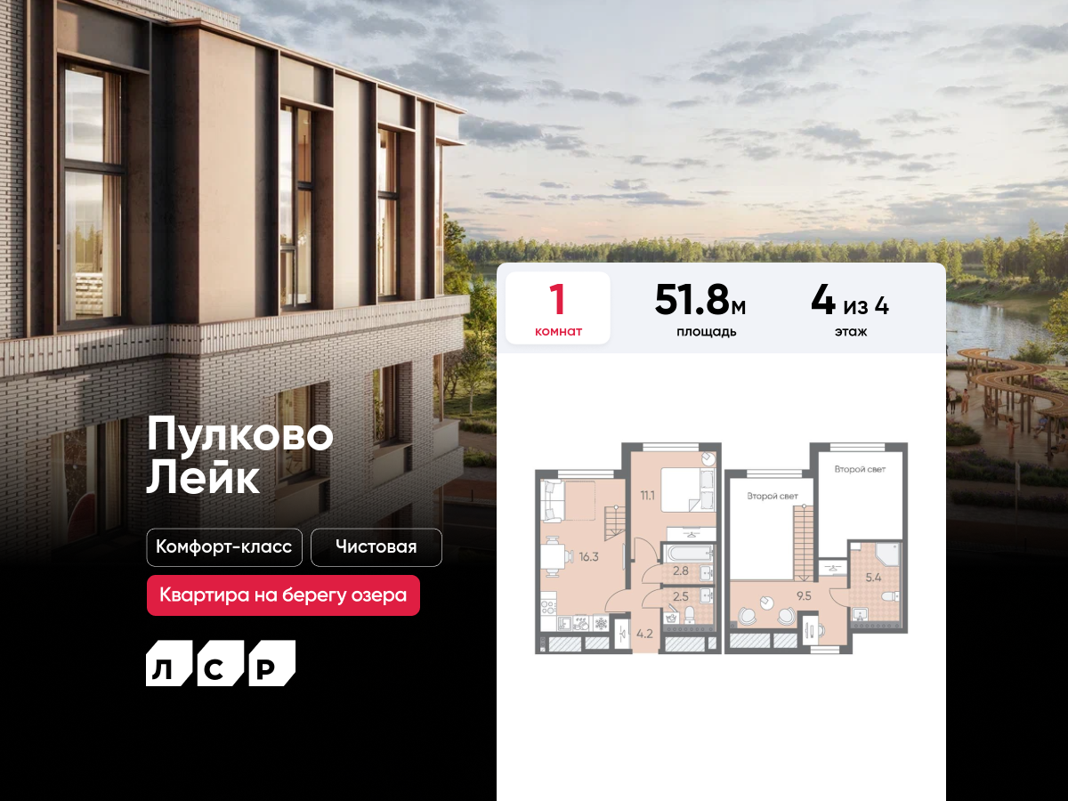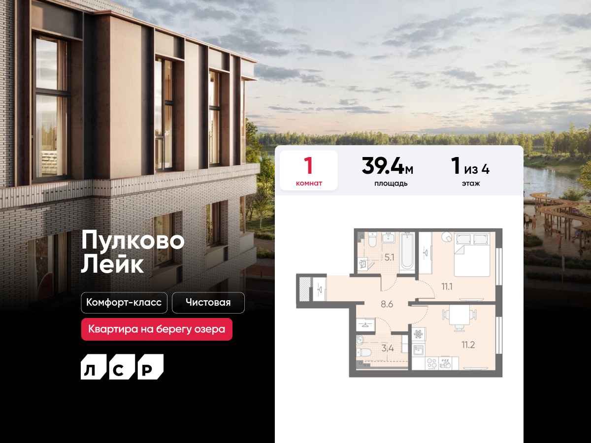 Однокомнатные квартиры в ЖК Пулково Lake (Лэйк)